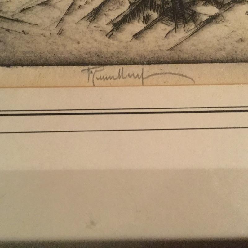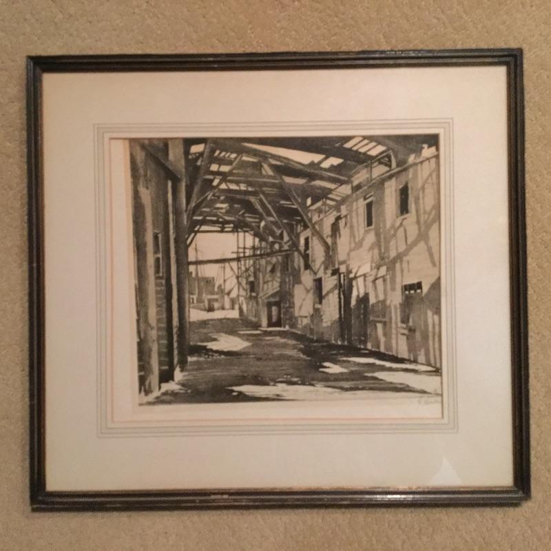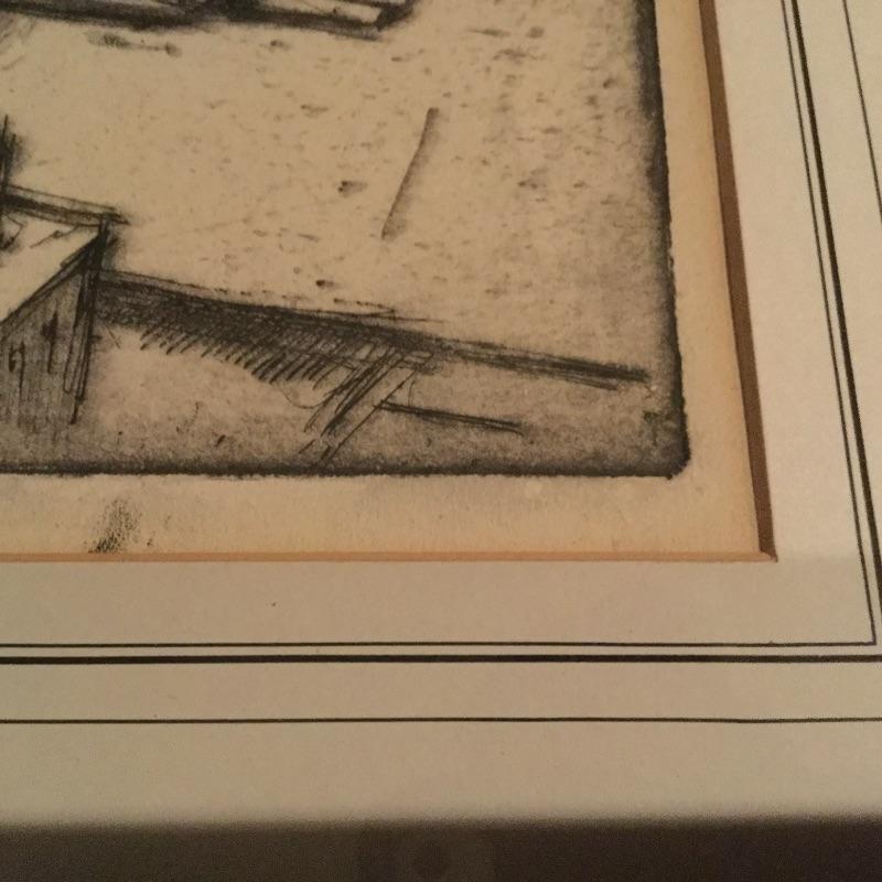Etching Measures: 15” L X 17.5” W . Next Etching Is professionally Framed and Signed and is titled “ Lights and Shadows” and Measures: 17 3/4” W X 16” L .