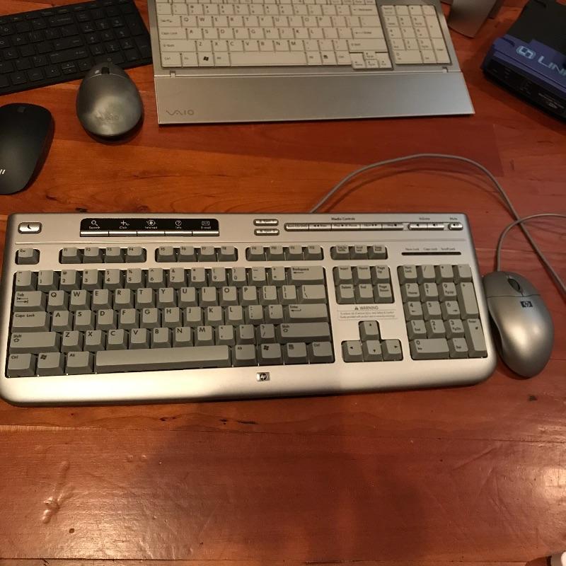 Sony Vaio desktop PC with a 22” monitor and PC with a wiped clean hard drive built in. HP wired keyboard and mouse, Vaio wireless and Microsoft Bluetooth designer keyboards. Also included are three mice, Belkin pocket USB hub, surge protector and more! See photos. No shipping.