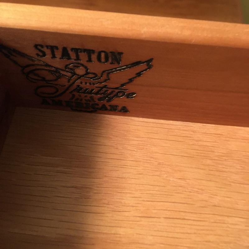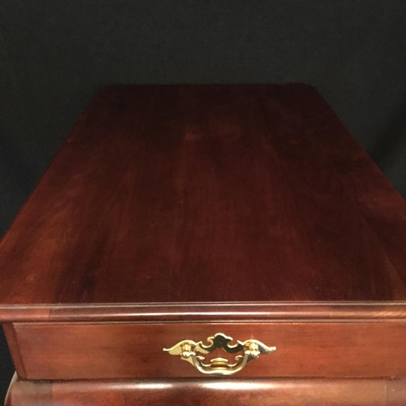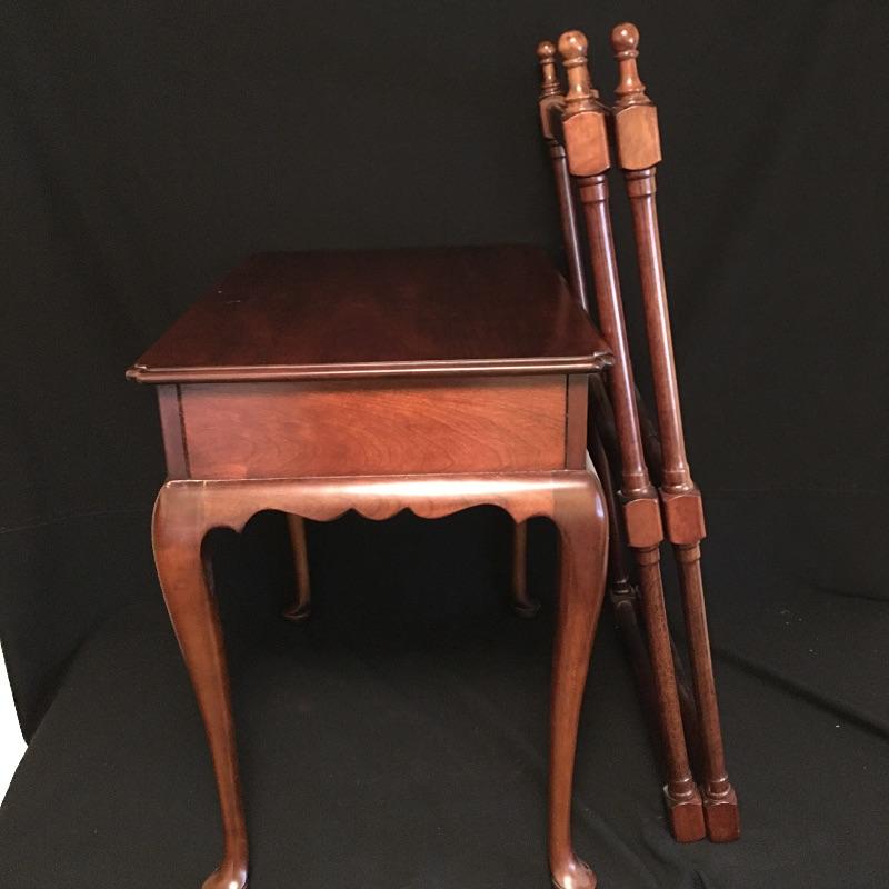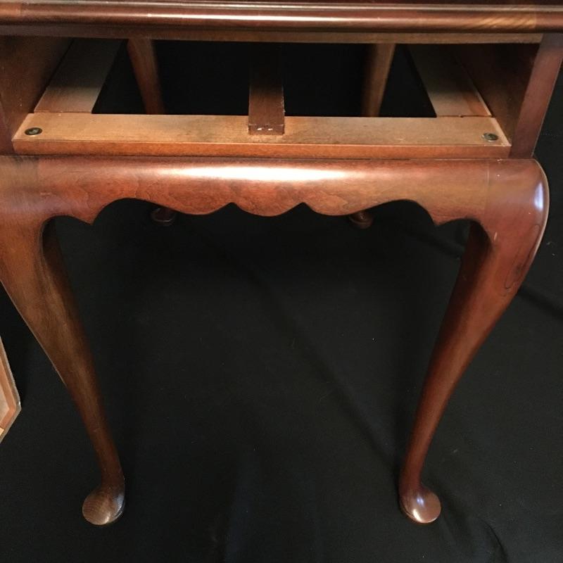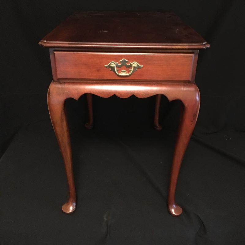 Statton side table with dovetailed drawer and a Bombay folding stand. Side table measures 18.5” x 27” x 25”.