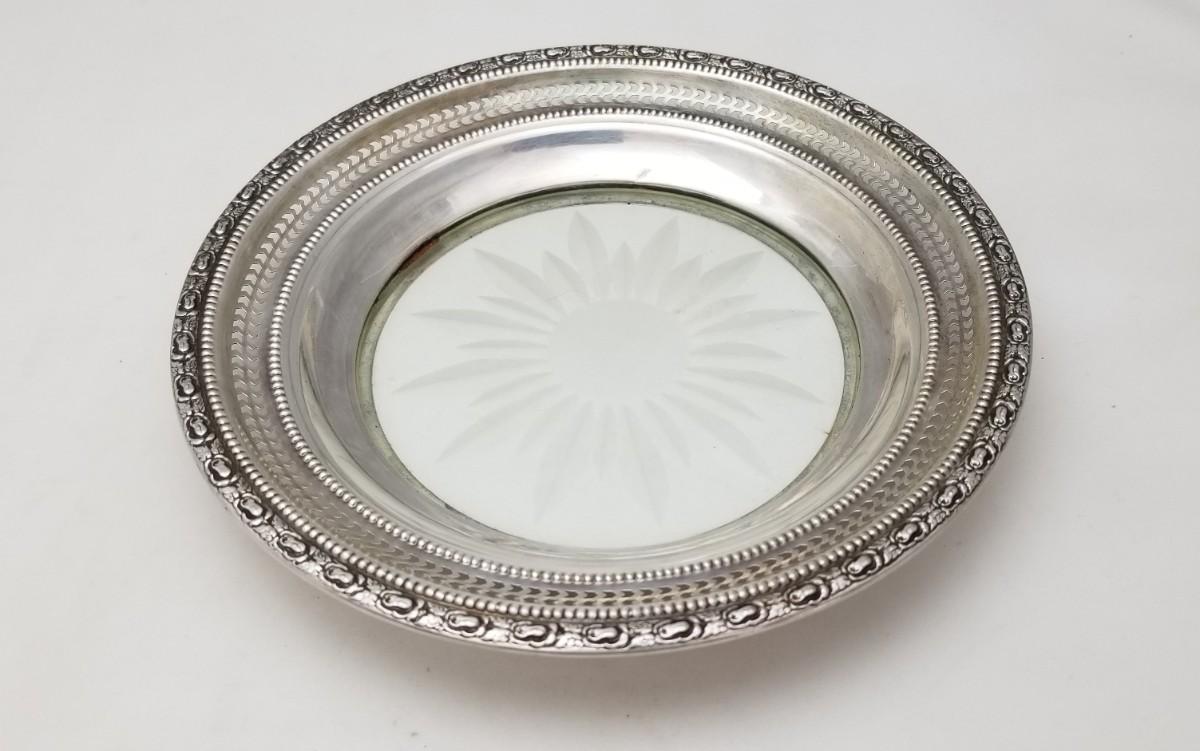 Lot #169  Sterling Silver/Glass Wine Coaster "Talisman Rose" pattern