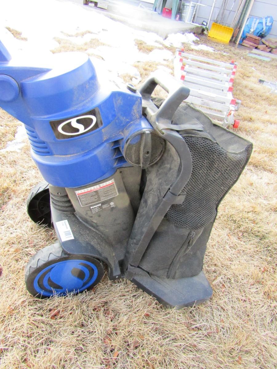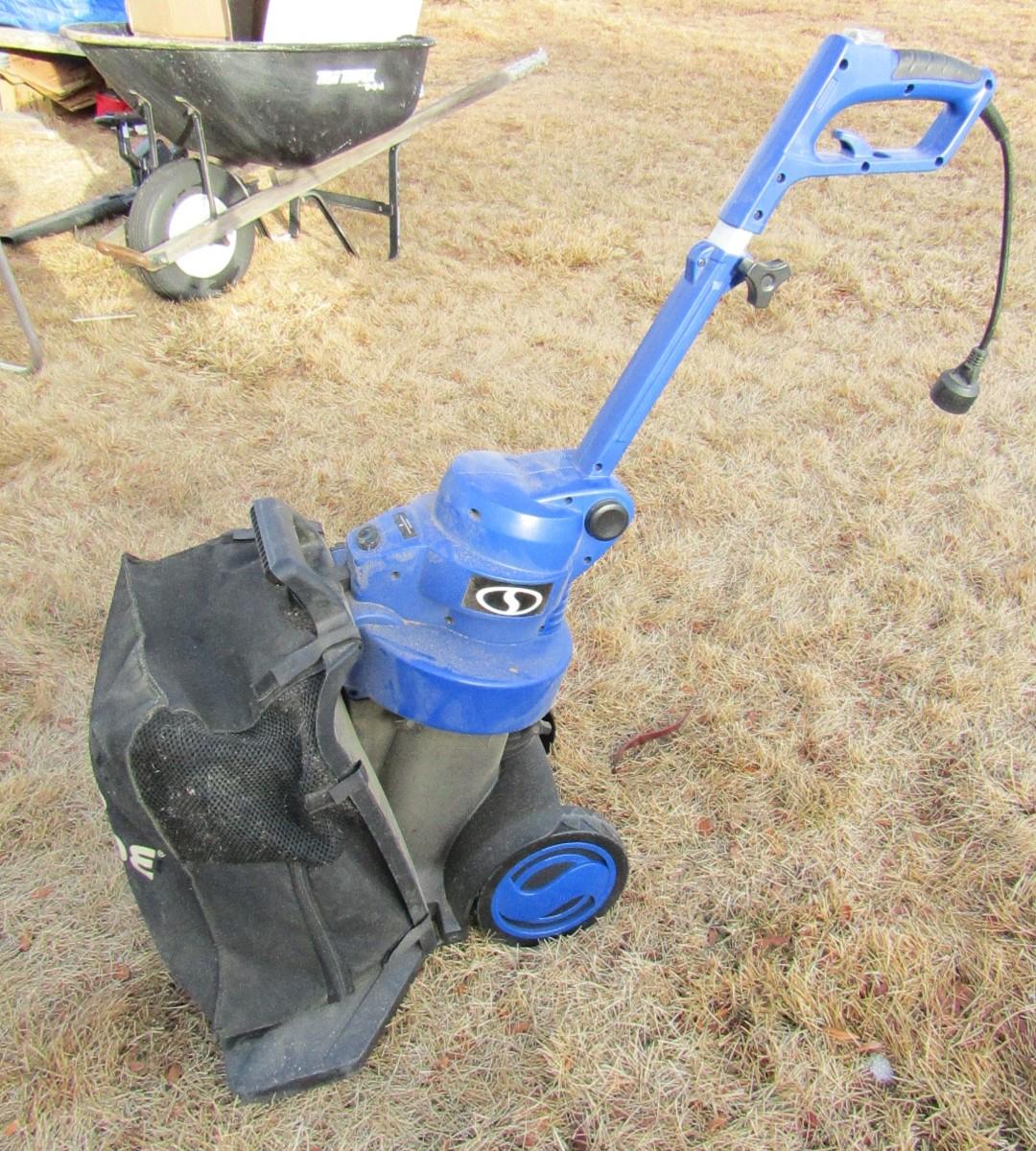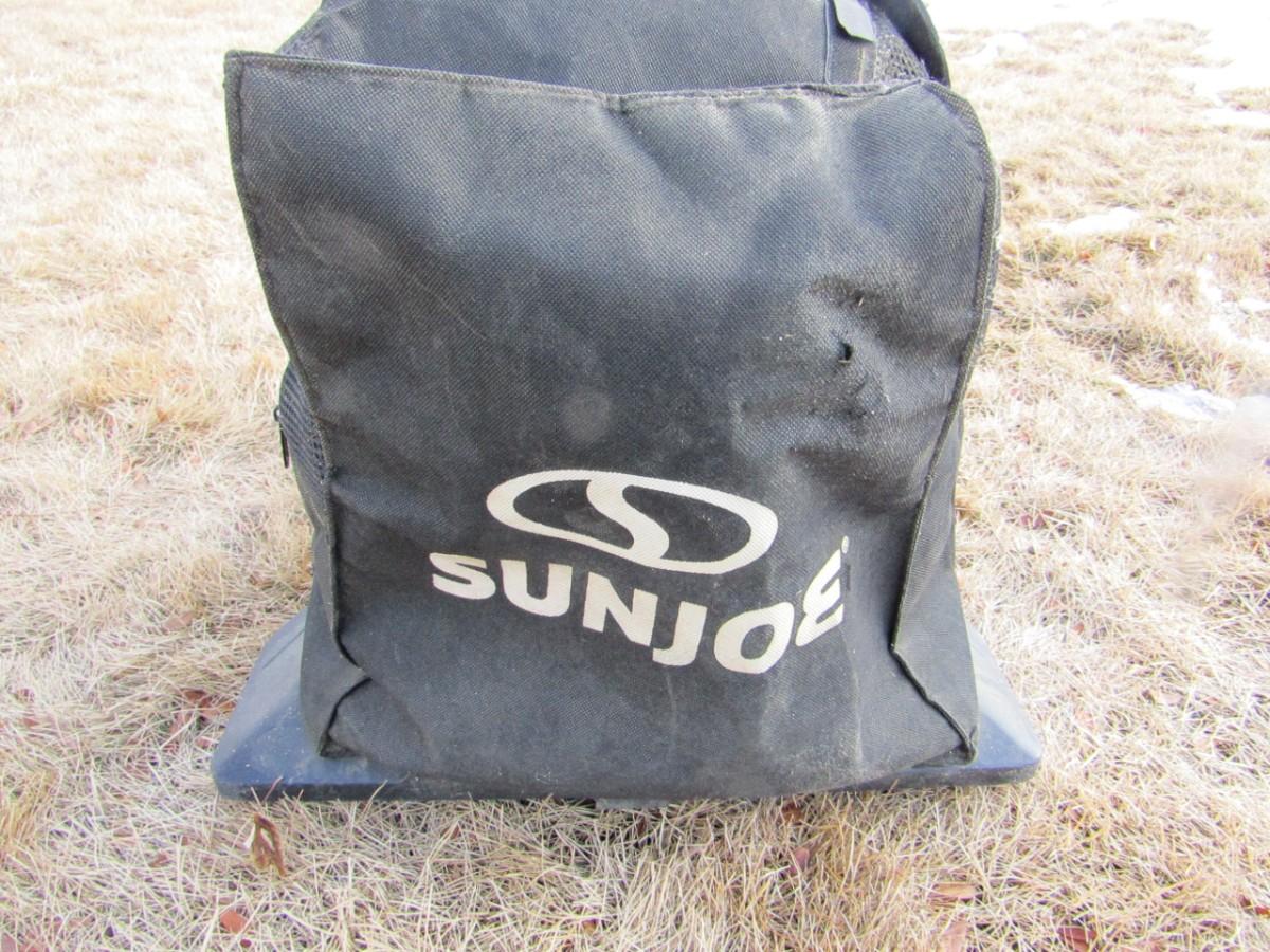 SUN JOE OUTDOOR ELECTRIC VACUUM/BLOWER/MULCHER (THE BAG HAS A FEW SMALL HOLES)
