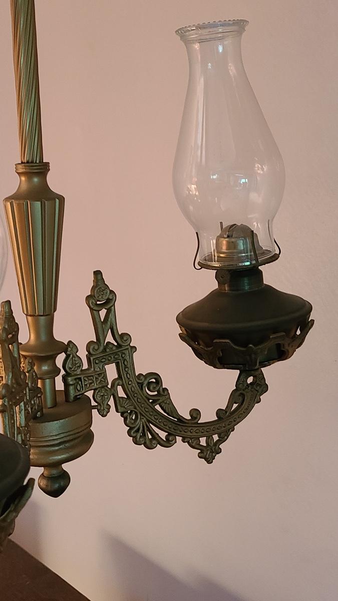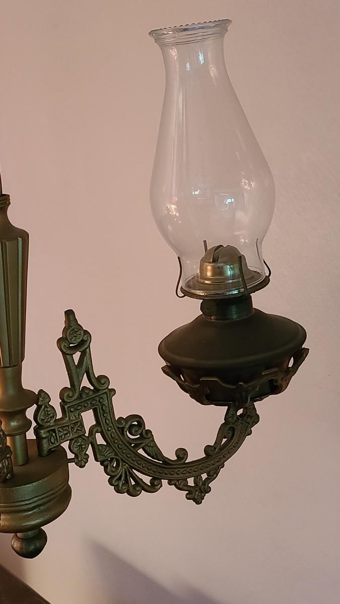 This was used as decor in room. The lamps are not filled and this is untested. 19x20x28 inches wide. Please see pictures as they are the best representation of the item, the condition of the item, and the size of the item.