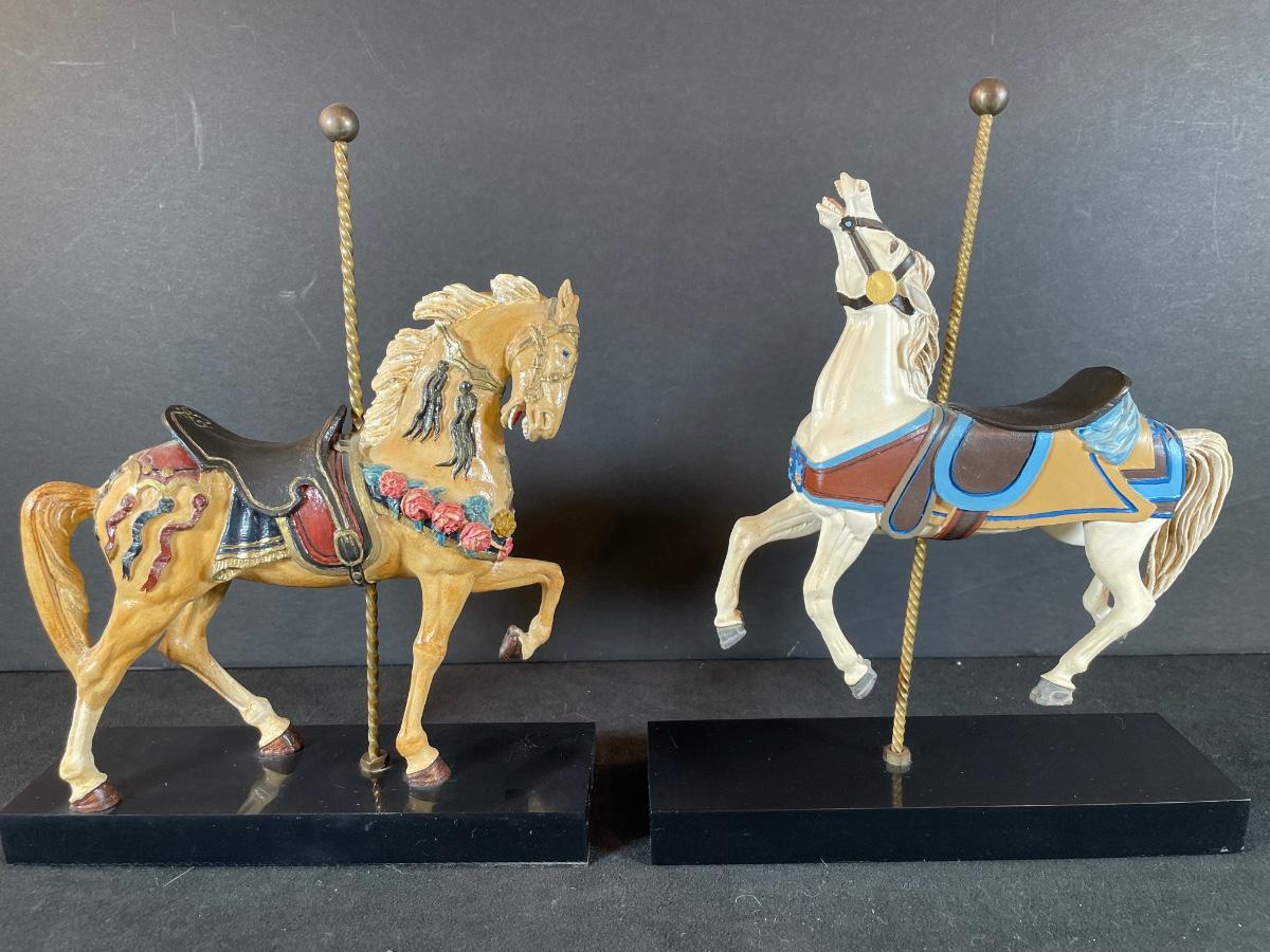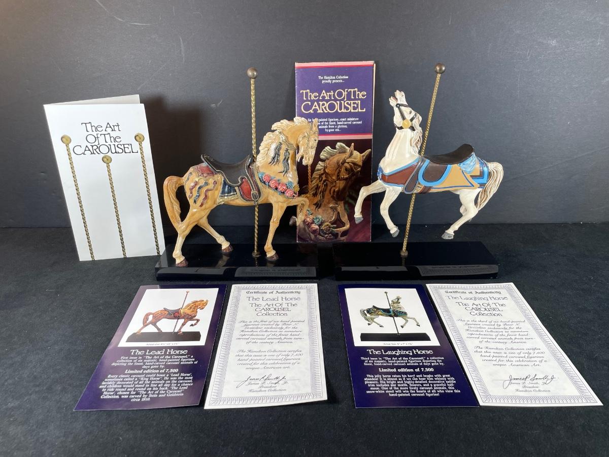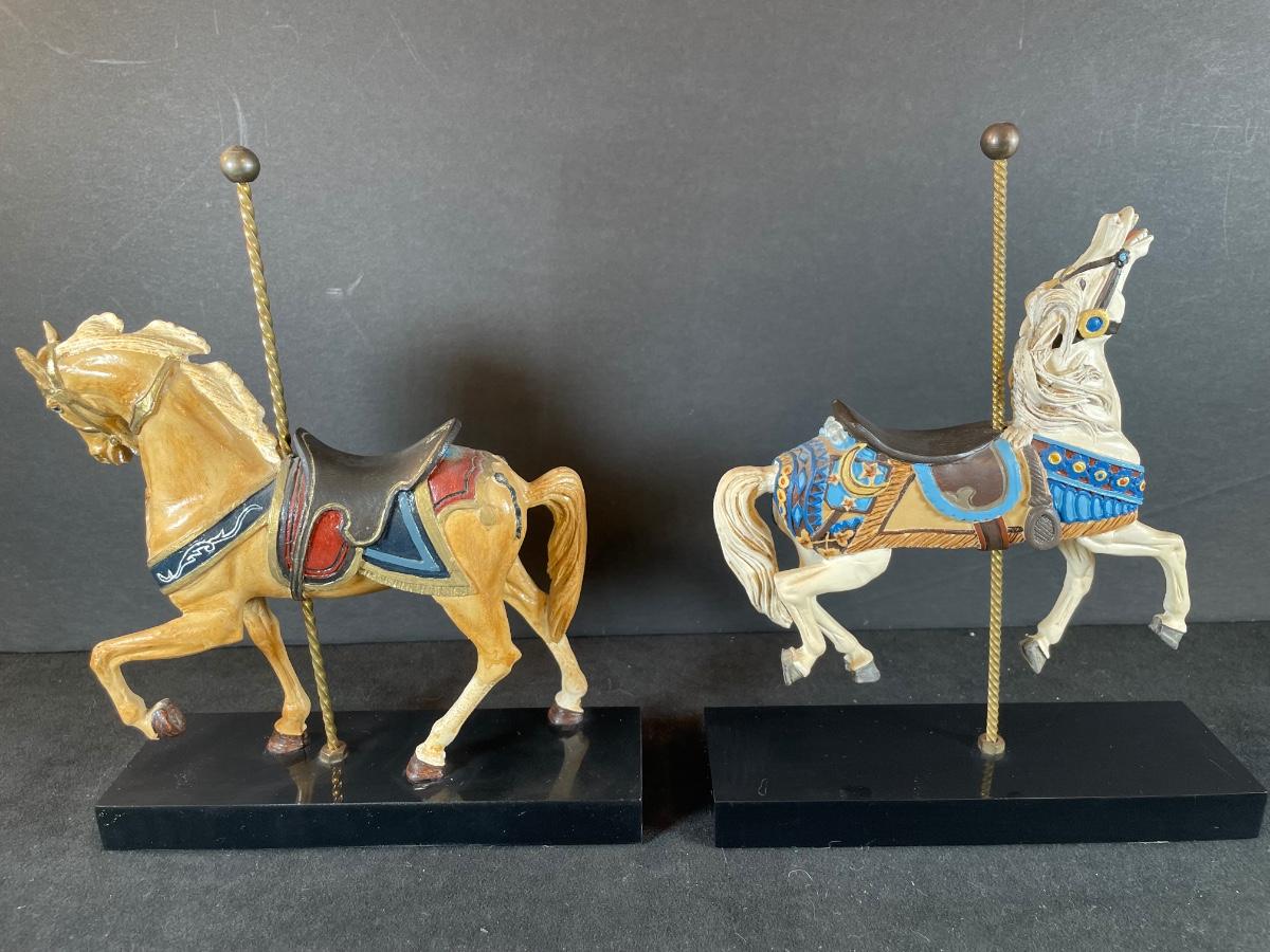 Art of the Carousel. "The Lead Horse" & "The Laughing Horse" 9" tall including base