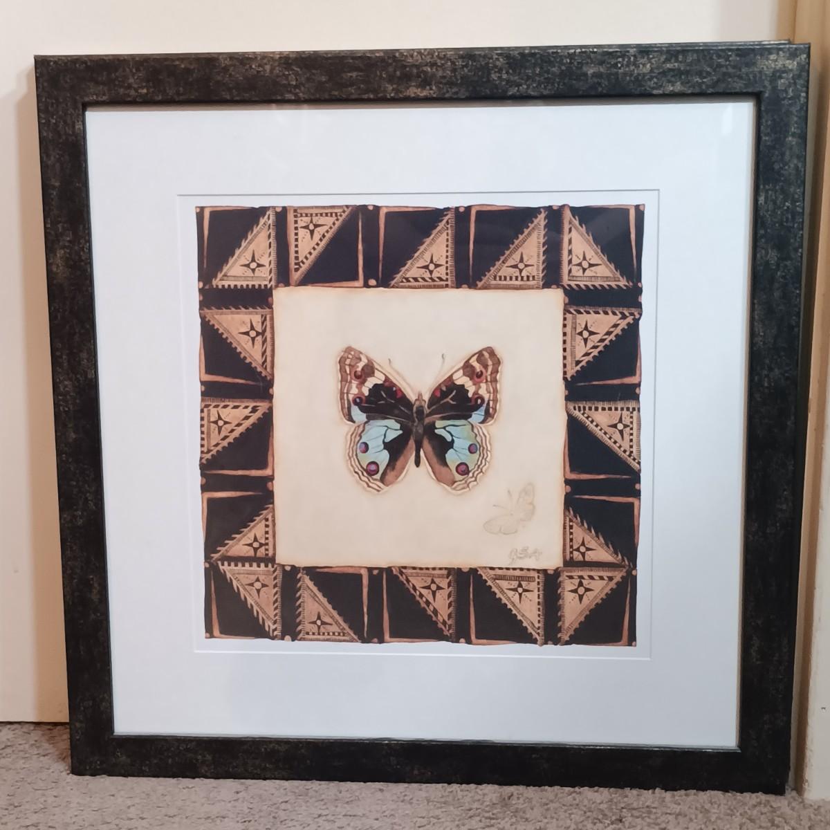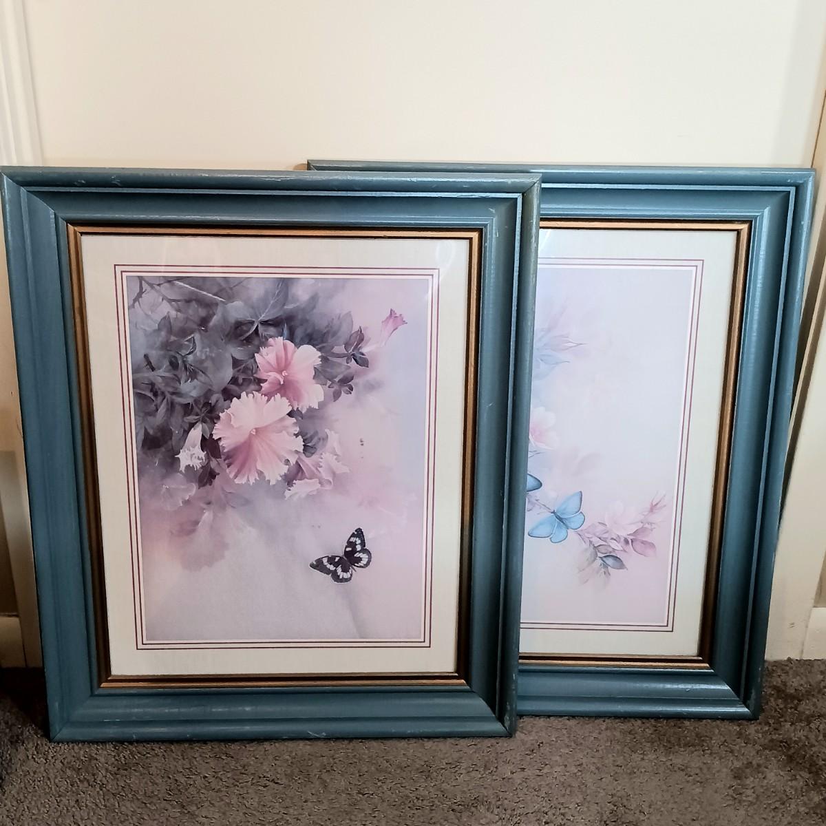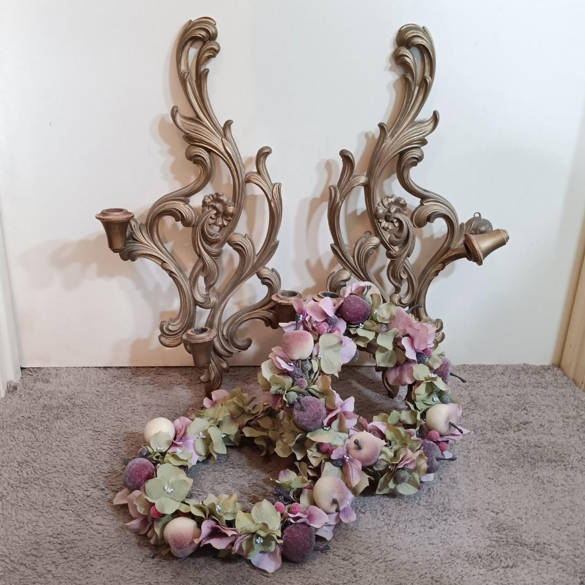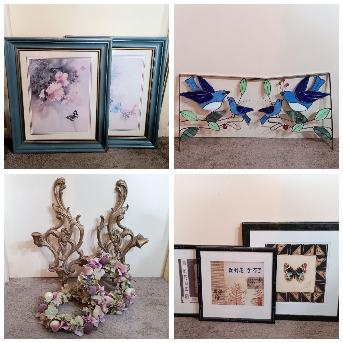 LOT 169B: Vintage Butterfly Prints, Wood Candle Holders, Stained Glass Wall Brackets & More