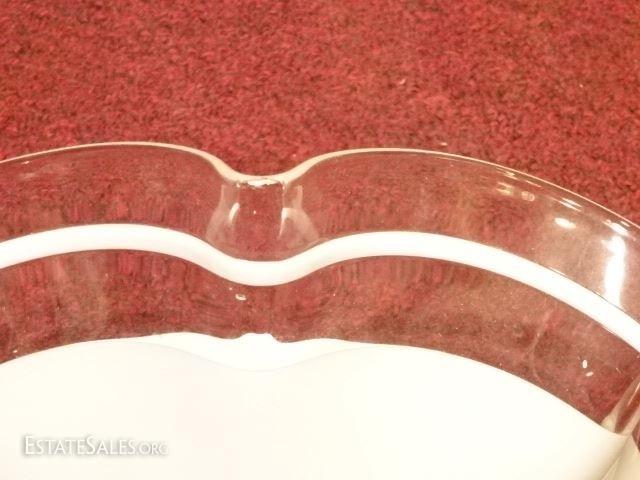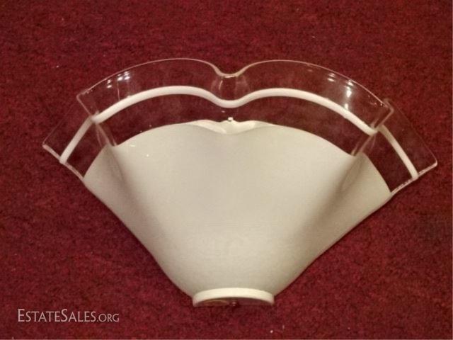 LOT 16C: ART GLASS WALL SCONCE, WHITE AND CLEAR GLASS WITH RUFFLE EDGE, VERY GOOD CONDITION, 12"W X 6"D X 7"H, SKU292.05 H50