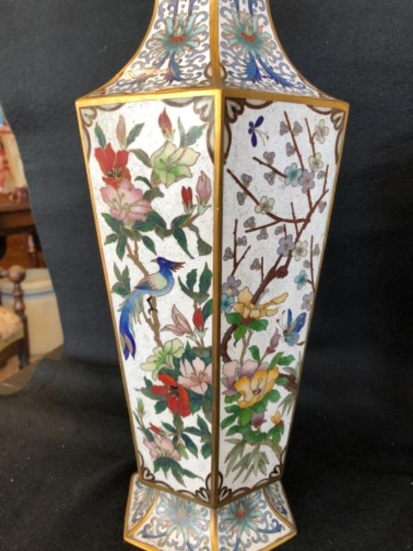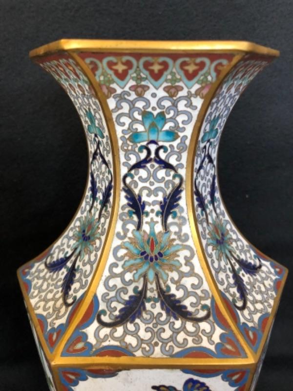 Lot 16P. Cloisonné tall vases, from China, 1 Pair 6 sided white background “” $345