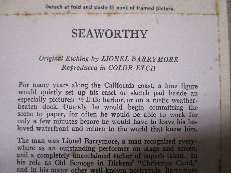 Lot 17 - Lionel Barrymore Gold Foil Etching Print - Seaworthy