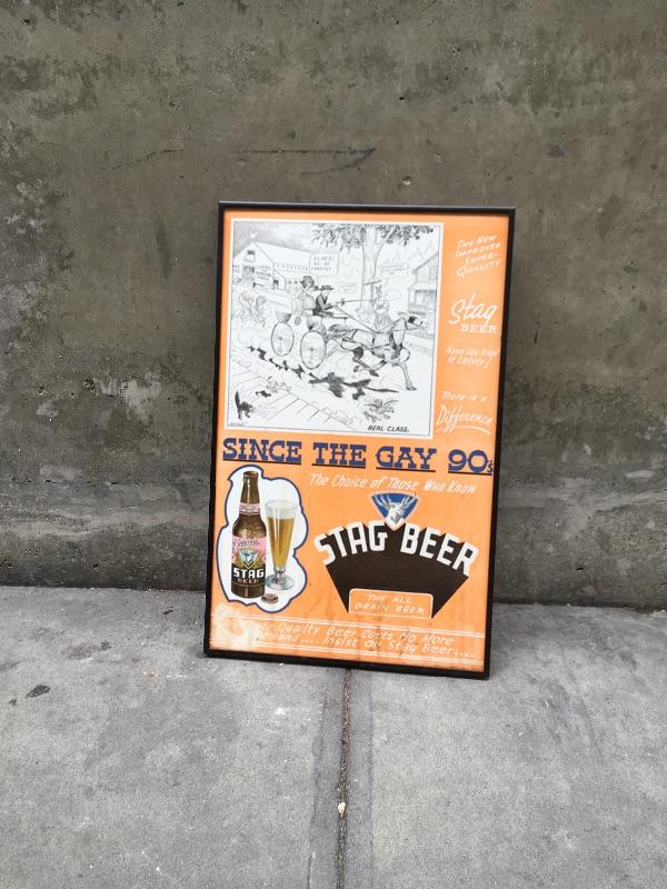 Lot 17 Vintage framed Stag Beer Advertising piece. Great piece with slogan "Since the Gay 90's" This piece used to hang in the now closed Red Door Ale house in Fremont.