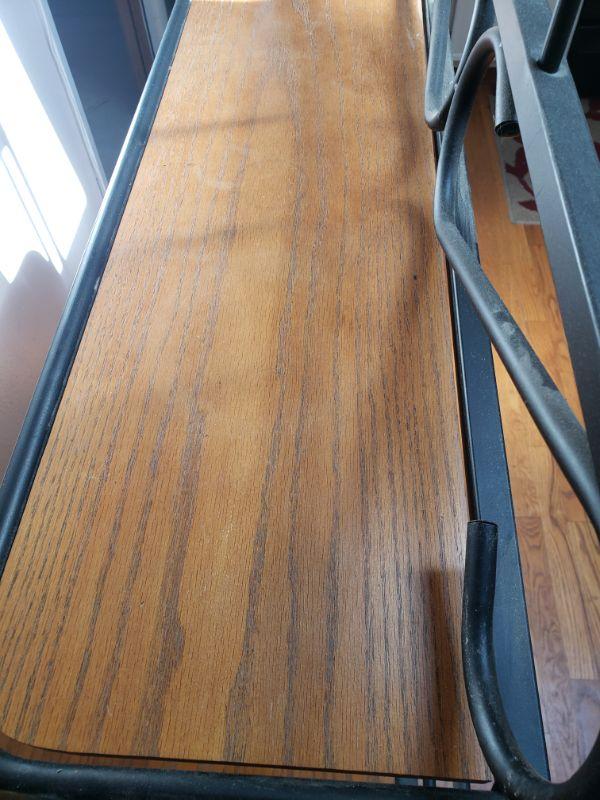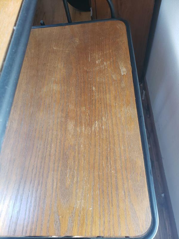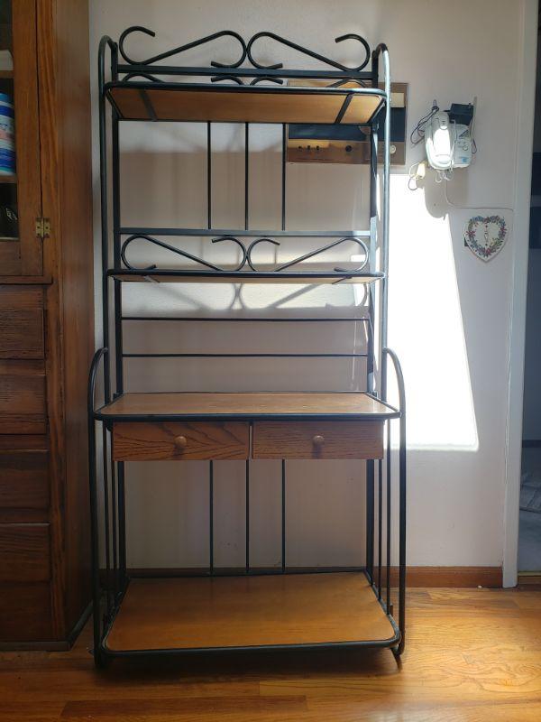 Kitchen coffee or microwave stand with oak shelves. Has some wear.
