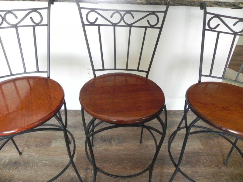 3 CHAIRS, NICE FINISHED WOOD SEATS, VERY NICE!