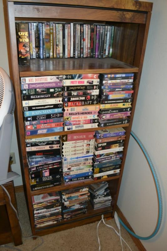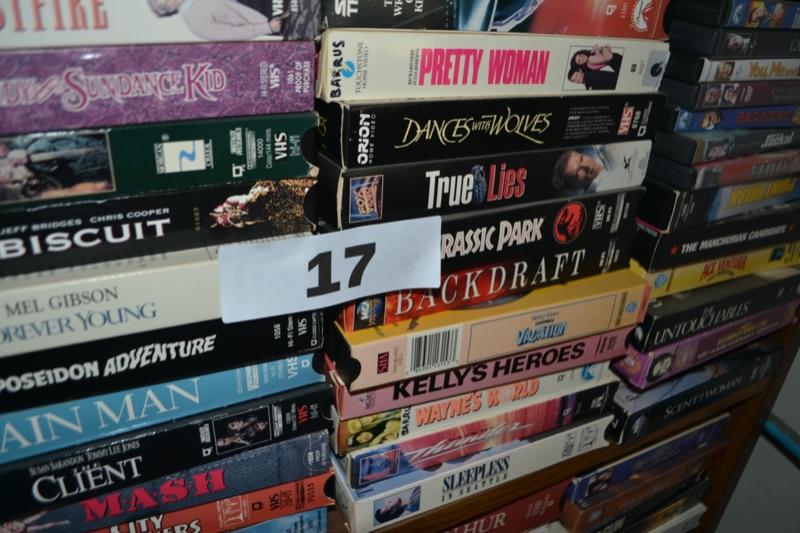 Lot 17 DVD VHS collection. you are bidding on DVD and VHs movie collection storage cabinet sold in separate lot
