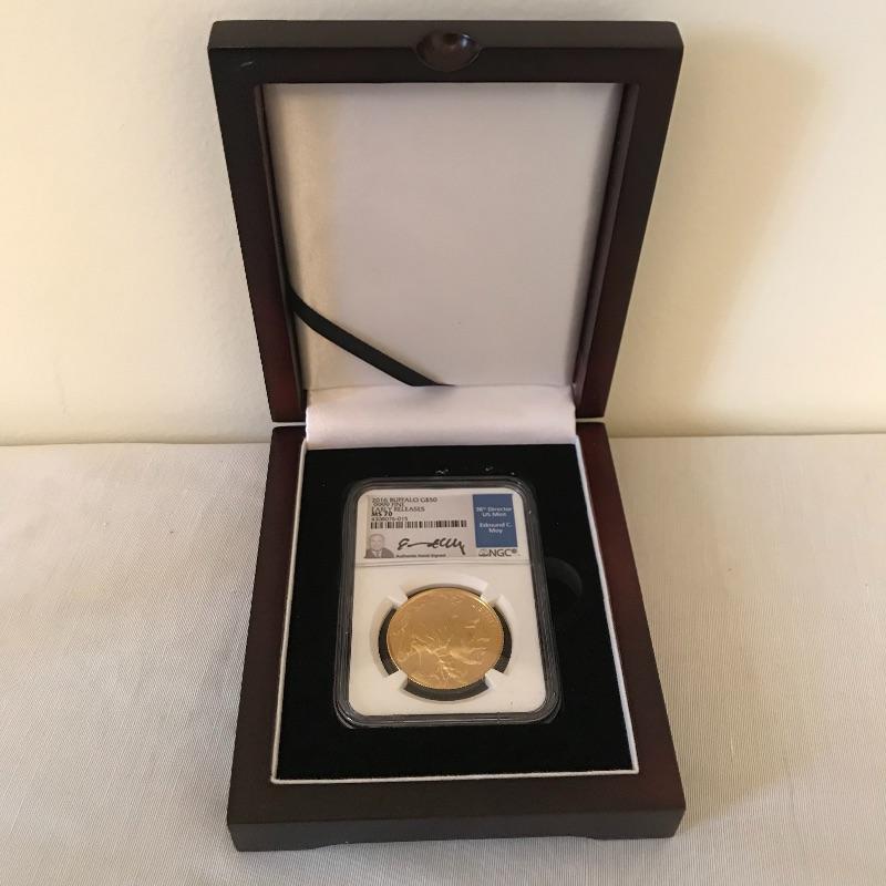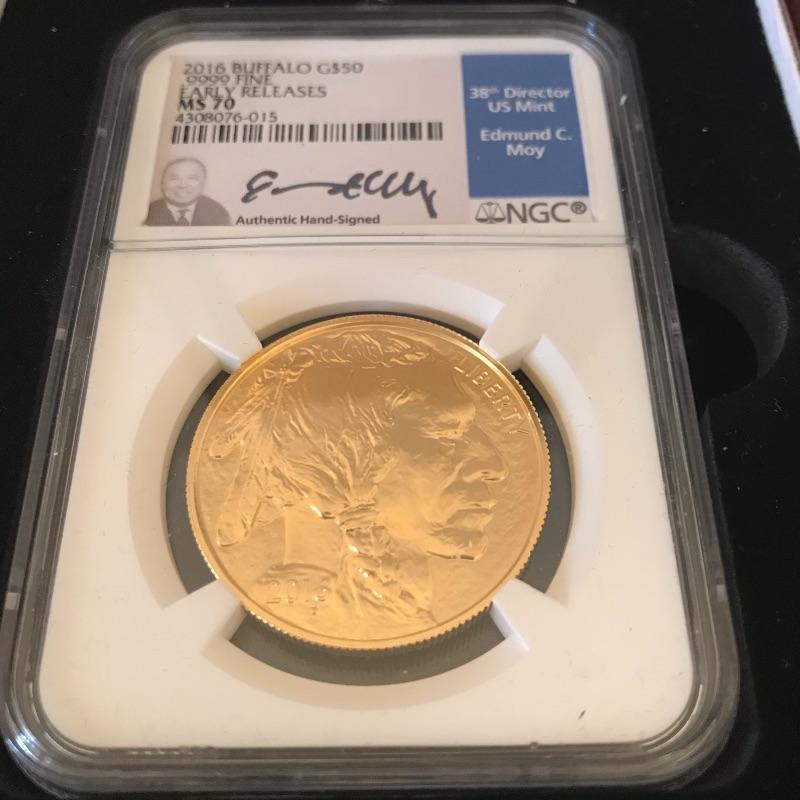 2016 Early releases MS-70 .9999 fine gold $50 Buffalo Coin. Graded NGC MS 70 Signed Edmund C. Moy, 38th Director of US Mint