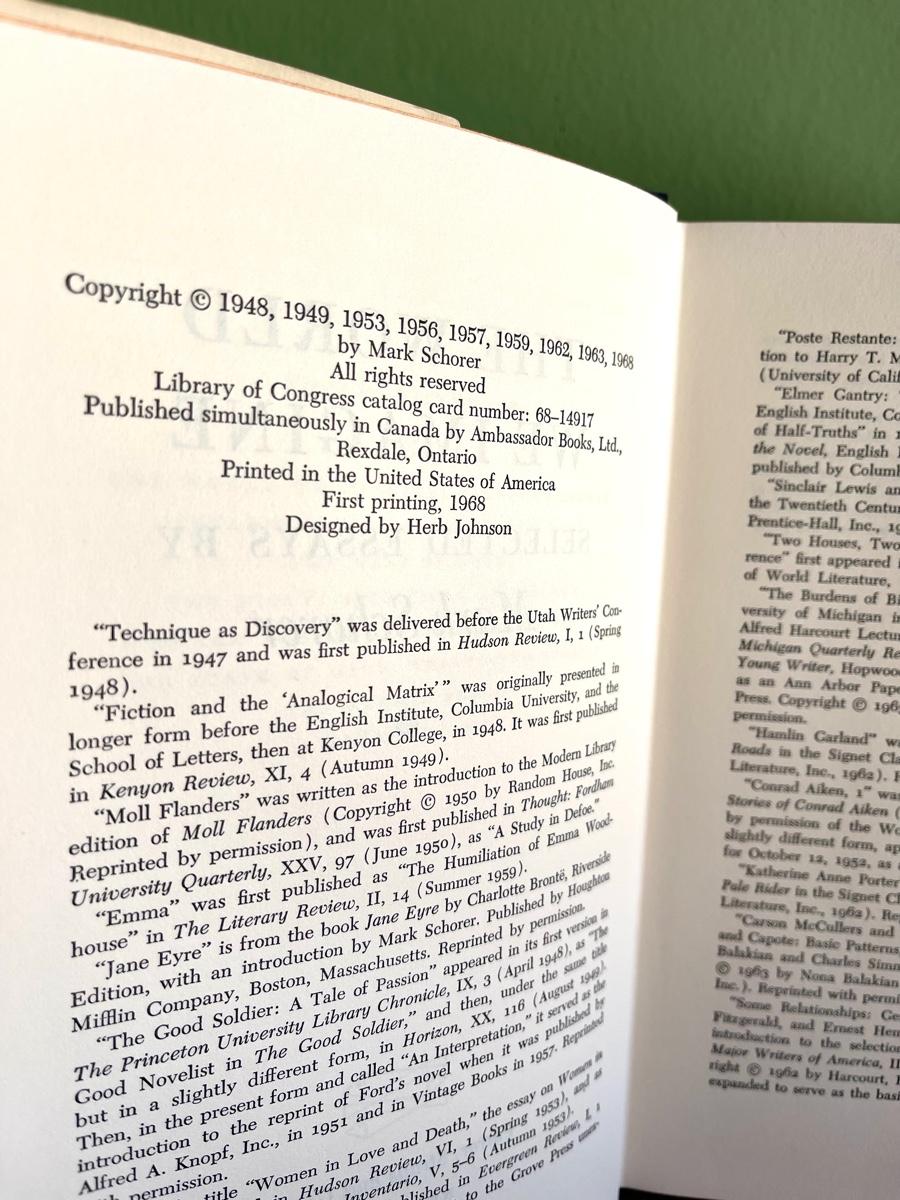 LOT 17 - SIGNED - The World We Imagine - Mark Schorer - Selected Essays