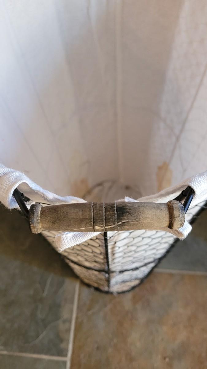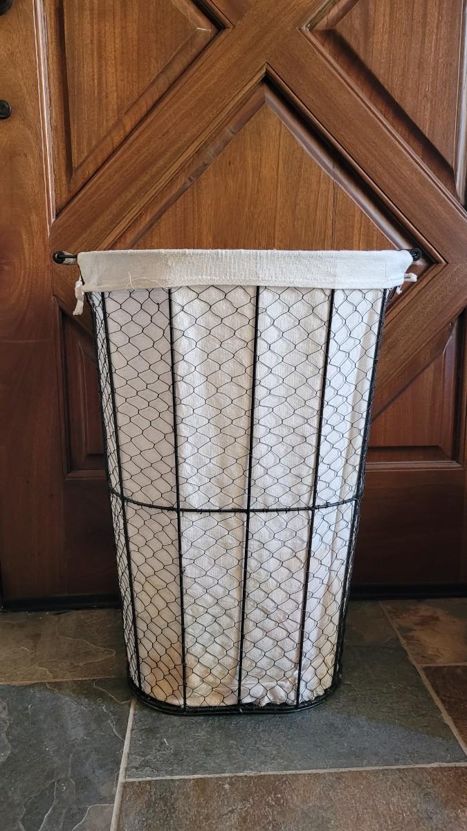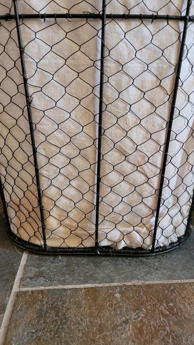 Lot 17: Chicken Wire Laundry Basket with Wood Handles