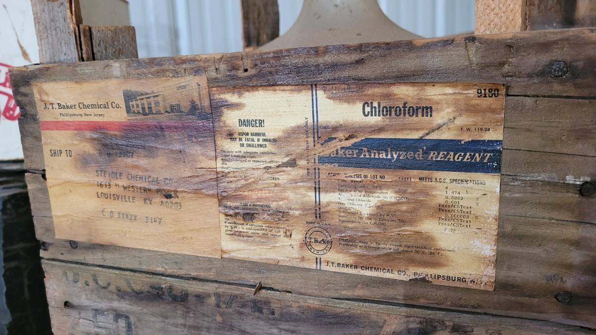 Lot 17: Vintage STANDARD Chemical Transport Case with ORIGINIAL Chloroform Heavy Jar Intact