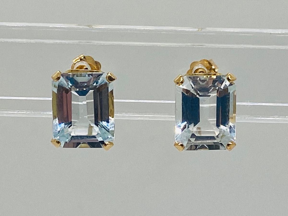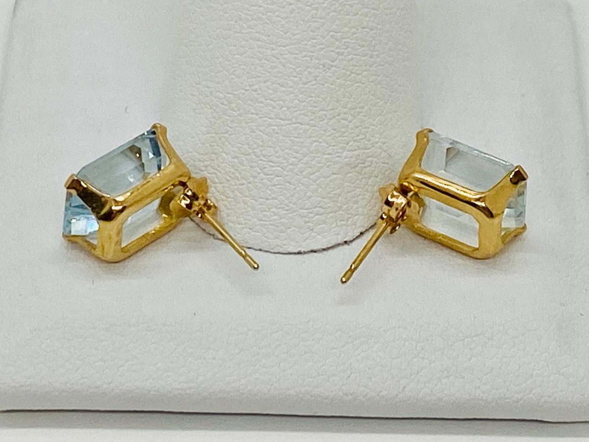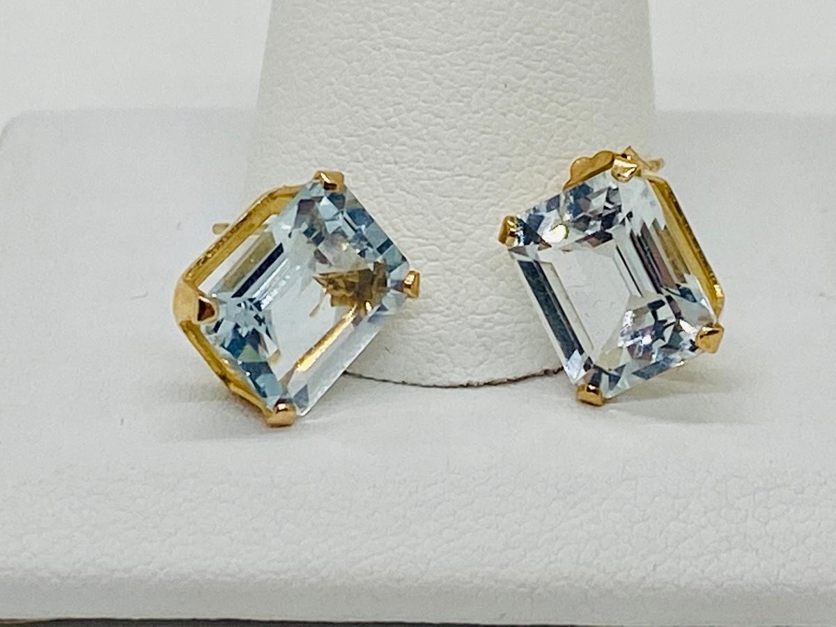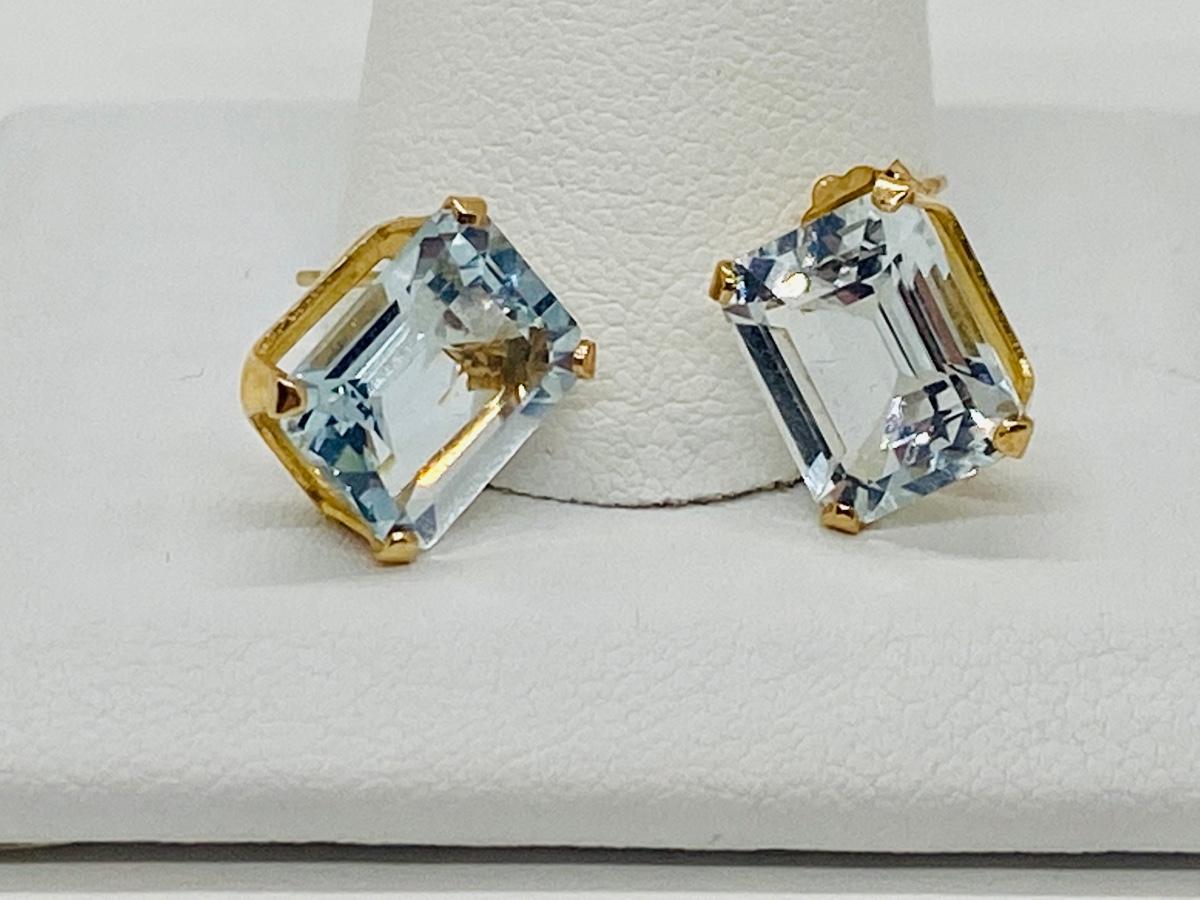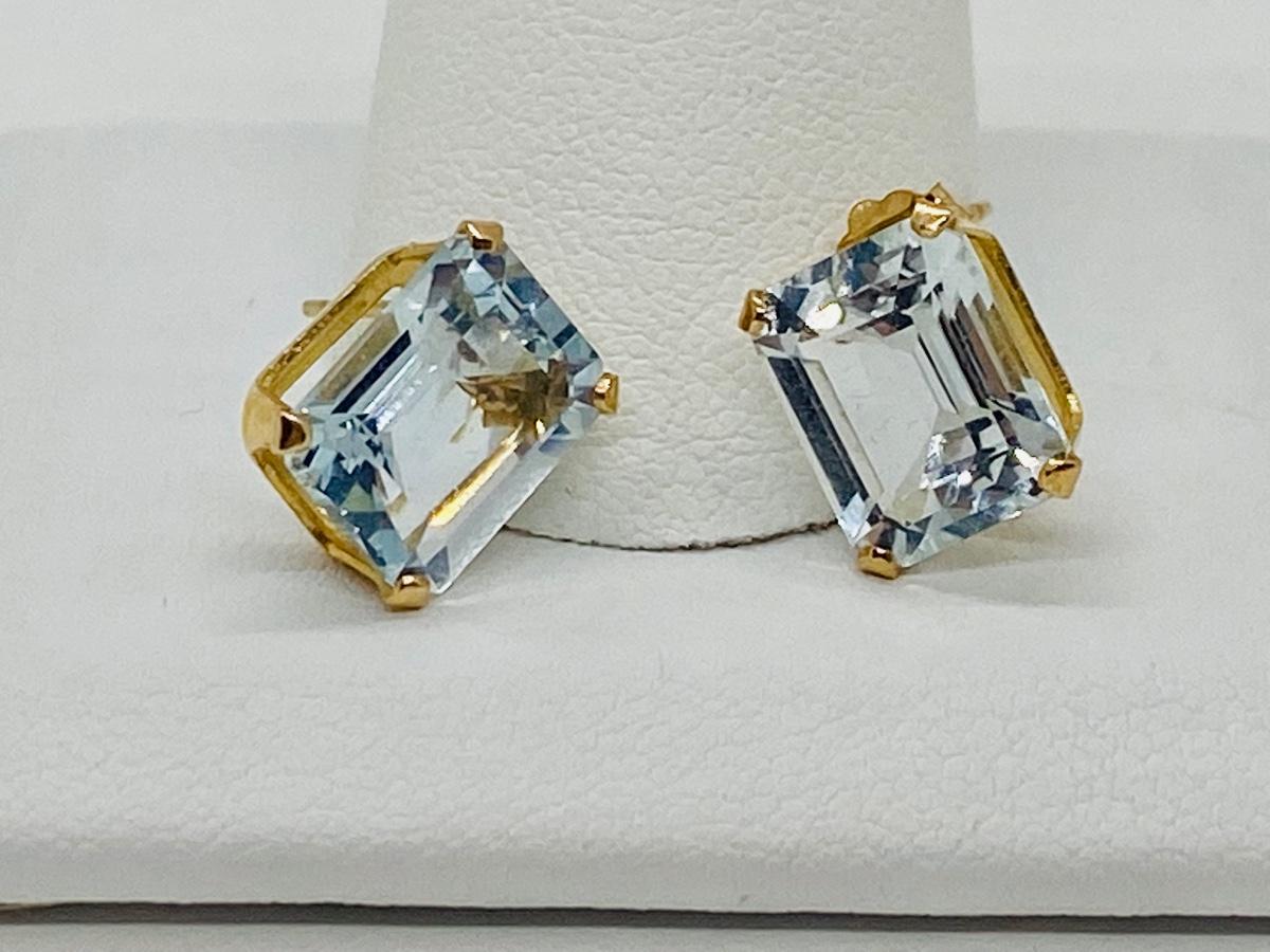 Lot 17: 14k Yellow Gold and Aquamarine Gemstone Pierced Earrings.