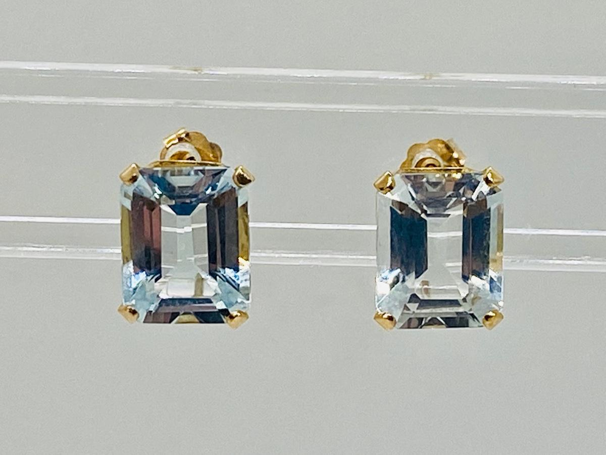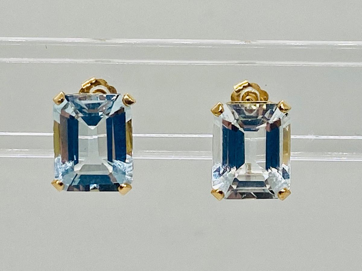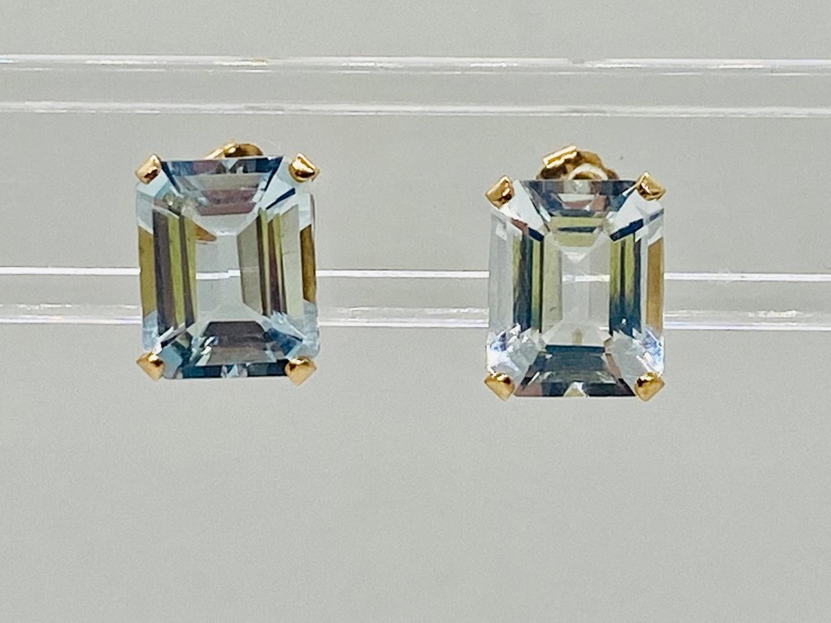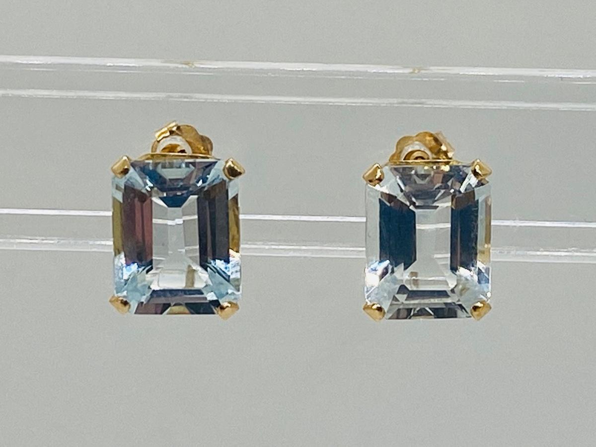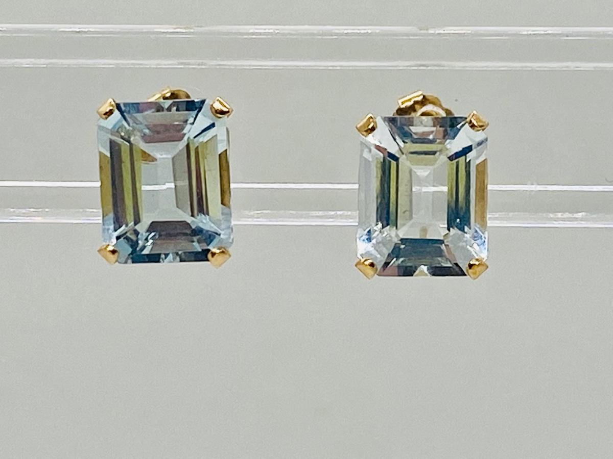 Lot 17: 14k Yellow Gold and Aquamarine Gemstone Pierced Earrings.