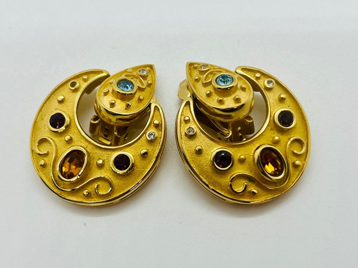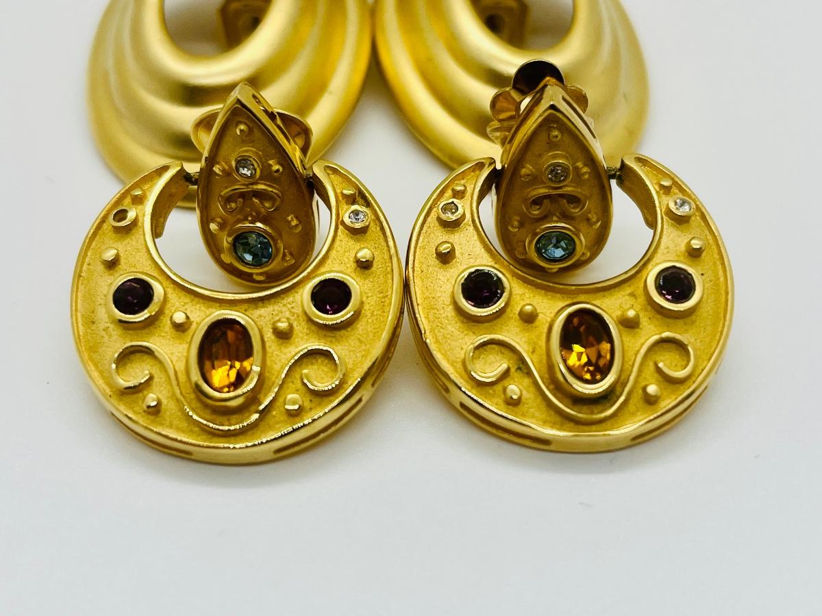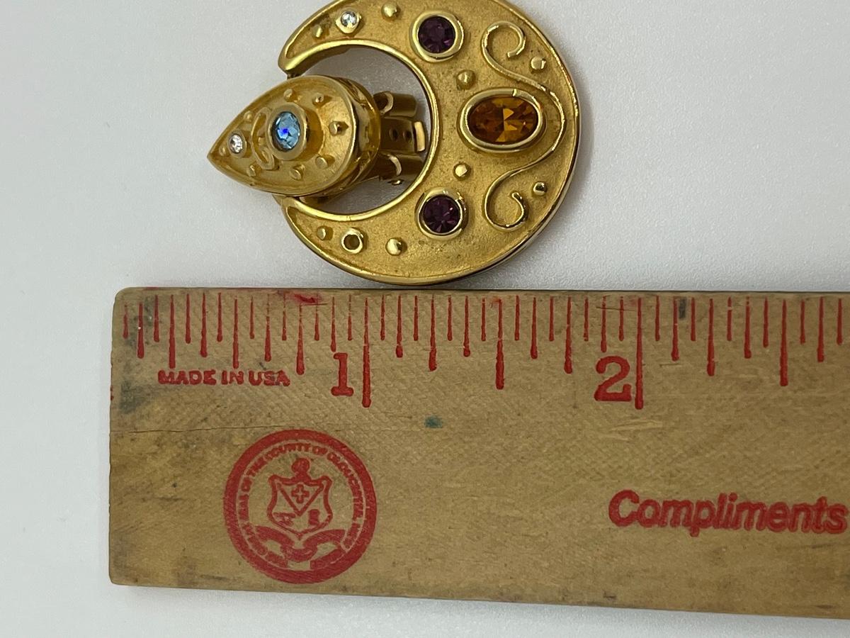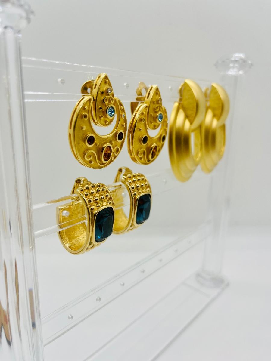 These are gorgeous in person and are chunky earrings! The gold pair that looks to have gem stones bling sparkle and look high end! One pair signed S.A.L. The pictures show condition, measurements if taken, and what is included in the lot. Due to the large amount that we photograph and the time frame, we are not always able to take measurements. All items unless noted, are pre-owned and have been used, and are untested. Thank you
