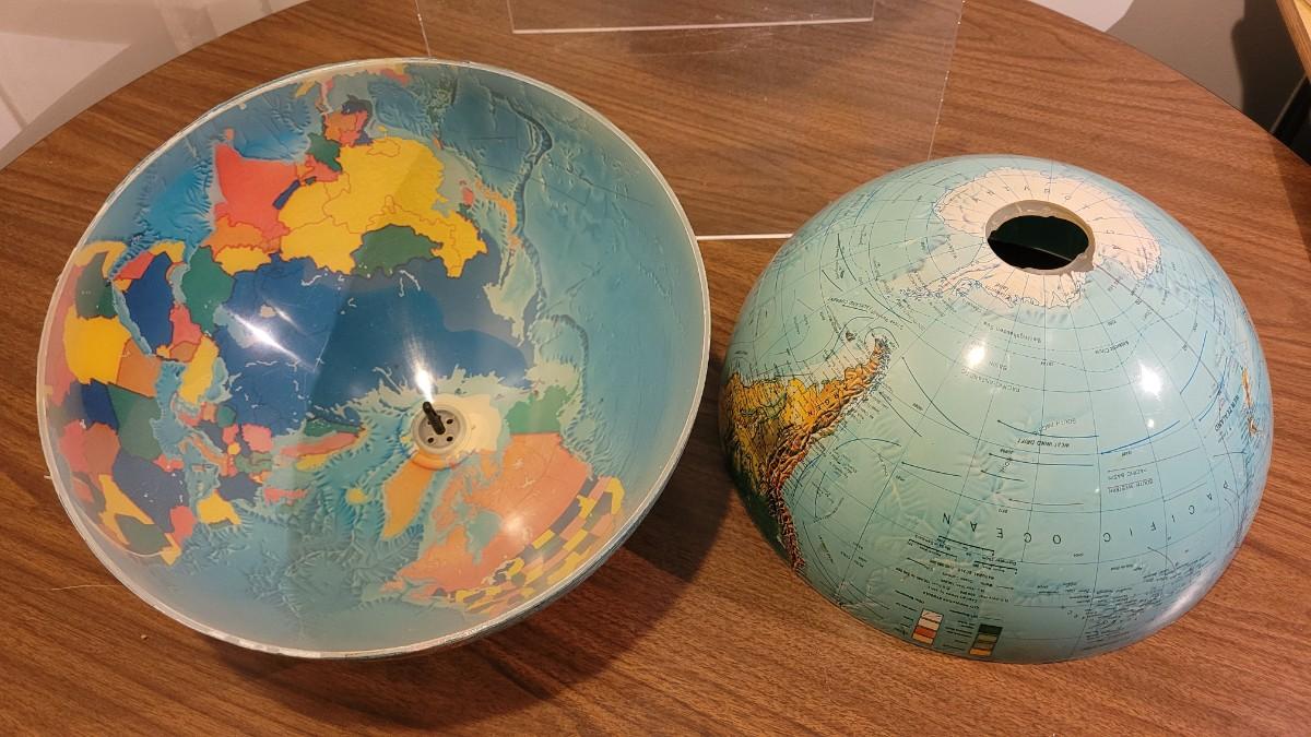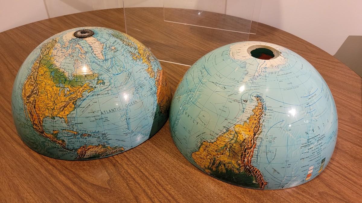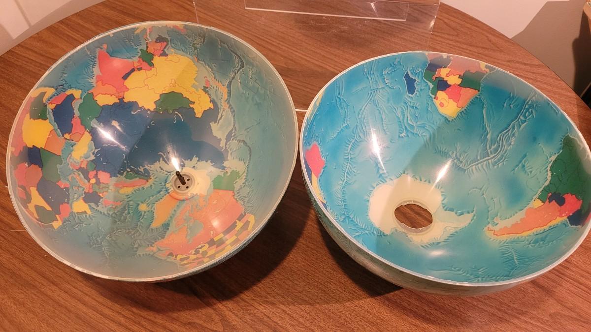 The Bowls are deconstructed Globe and have holes where the pole would have been.