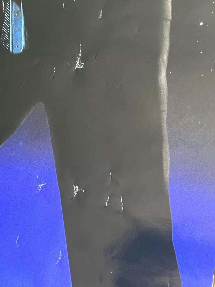 This poster has considerably more wear than the rest in the collection. Scuffs and scratches over the interior of the poster.