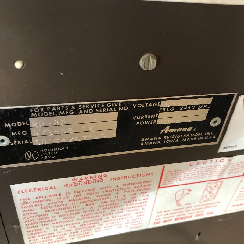 This retro Amana RadarRange model # RR 8A and seems to work well when tested and will look cool in any kitchen.