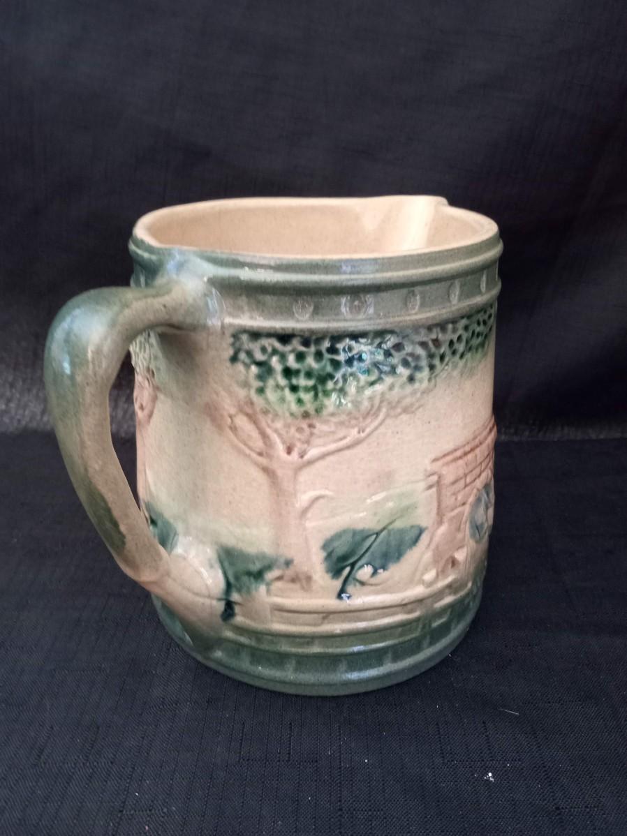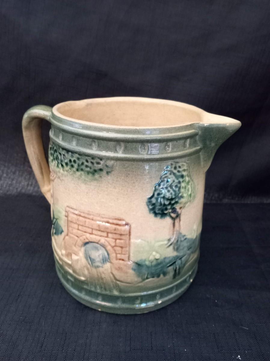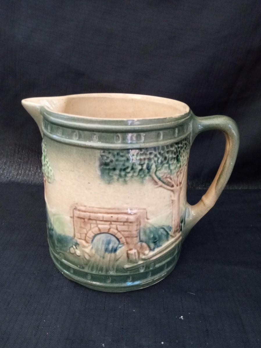 LOT 17 ANTIQUE CHILD'S BOWL, CREAMER AND A CANDLE LANTERN WITH HURRICANE