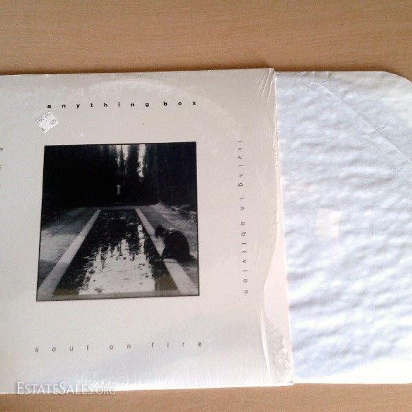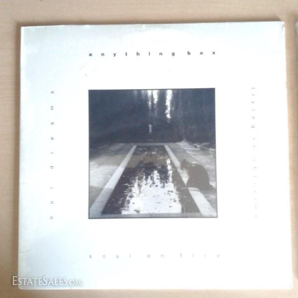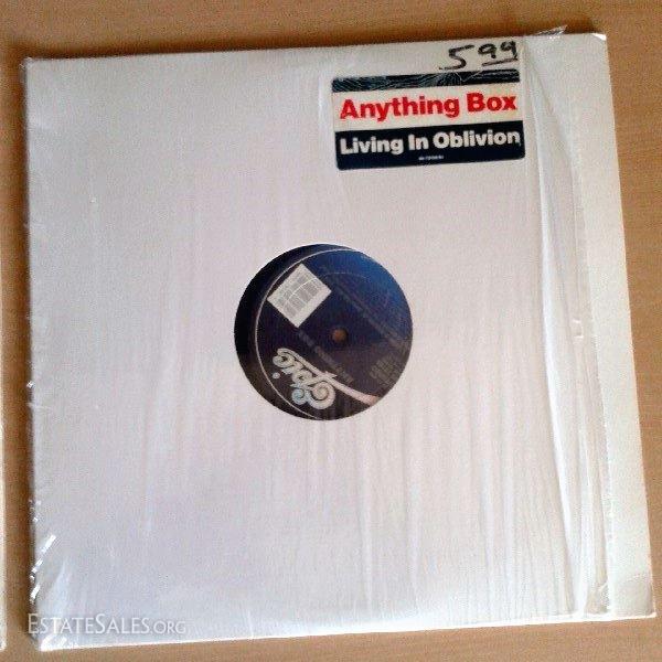 Taken from Wikipedia: "Anything Box[1] is an electronic/synthpop musical group originally from Paterson, New Jersey and now based in Orange County, California. Formed in 1986, they are best known for their 1989 single "Living in Oblivion". The band is one of the primary bands which carried electronic music's transition from the late 1980s into the 1990s and beyond. With a current lineup consisting of Claude Strilio, Dania Morales and Paul Rijnders,[2] the past members have included Carlos Pacheco, Mike Zacek, Gary Strilio, Dave South and Barry Bunch. The band is noted for its melodic, synth-driven dance beats from its early years as well as its fusion of electronics and guitars which is its current musical focus. The band's songs, lyrics, as well as Claude's vocals have been widely regarded in the electronic music community as some of the finest. The band also receives praise for its album artwork which ranges from oil paintings to electronic paintings which are all works of Claude Strilio. Anything Box, (also known as Abox by its loyal fan-base), has released several albums, EPs and singles and continues to perform their energetic live shows around the world." Both albums are in excellent condition, and have their original cellophane jackets, albeit tears and/or creases and folds; excessive wear and tear on either albums or sleeves is documented in up-close photographs. Albums in this collection include: Anything Box (Soul On Fire/Our Dreams/Living in Oblivion); Living in Oblivion 5-Mix Master. Reminder: Only out-of-state winners have S&H/alternate payment options.