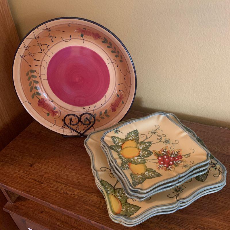 LOT 17 BOWL AND STAND WITH 6 PLATES