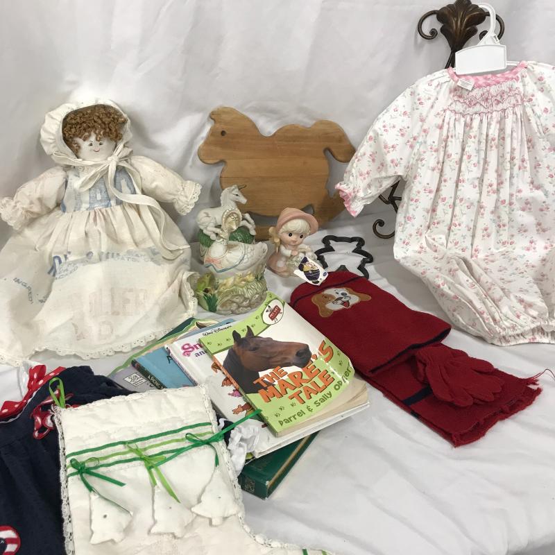 Doll, music box, books, figurines, baby clothes, stocking and decor. Lots of items for your sweet baby. Local Pick up only in Maggie Valley, NC.