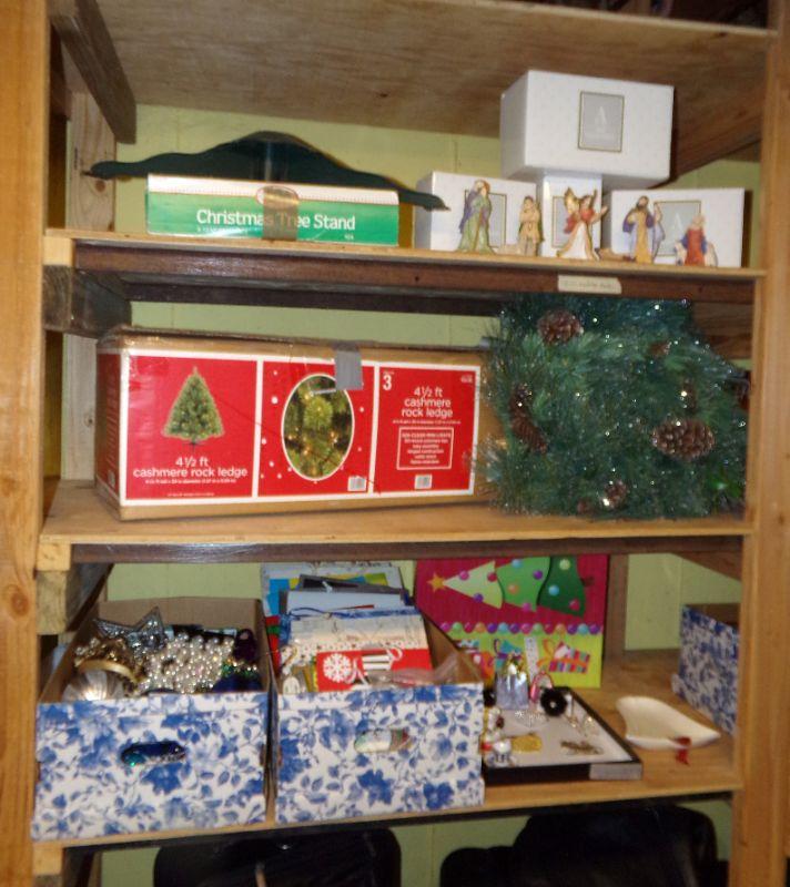 AVON NATIVITY SCENE, 4 1/2' LIGHTED ARTIFICIAL TREE, ORNAMENTS, NEW AND USED LIGHTS AND MORE