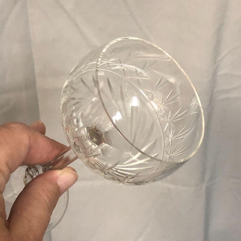 The bowls on these wine stems are gorgeous and in excellent condition. They are small, but you could also use them to serve small desserts like mousse and puddings. They are about 5.25" tall.