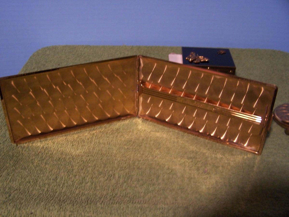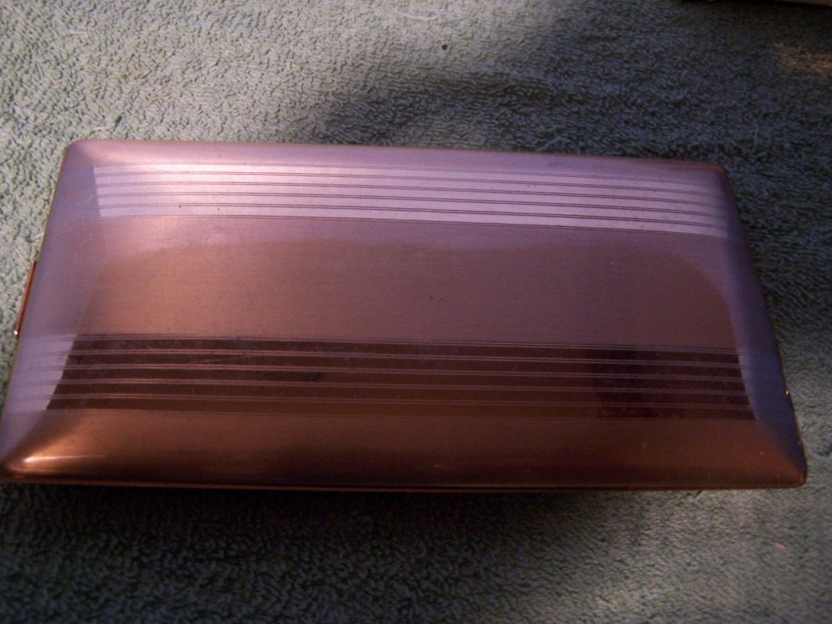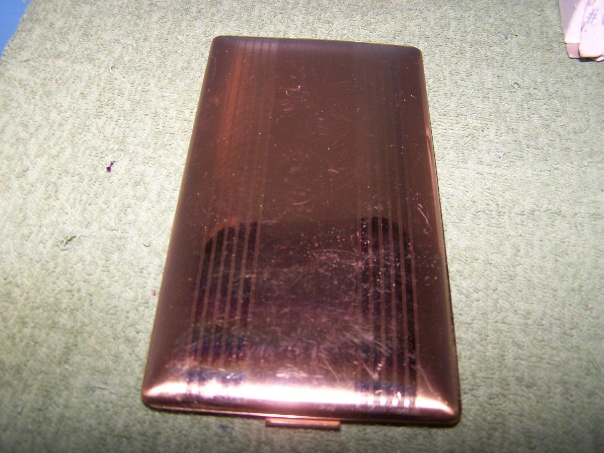THESE ARE GREAT VINTAGE PERFUME/COIN/PILL BOX/CIGARETTE CASE(ELGIN AMERICAN). SNAIL IS A ESTEE LAUDER AND IS A UNUSED PERFUME. CIG CASE IS 3 1/8'' X 5 7/8''... LIGHT WEAR...