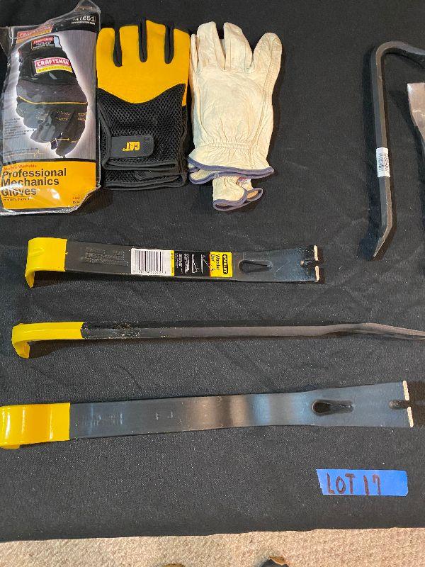 Craftsman gloves, Stanley crowbars, Dasco chisels and other miscellaneous items.