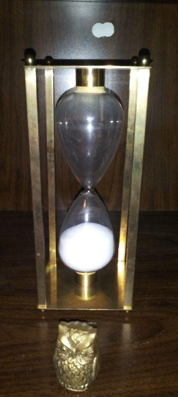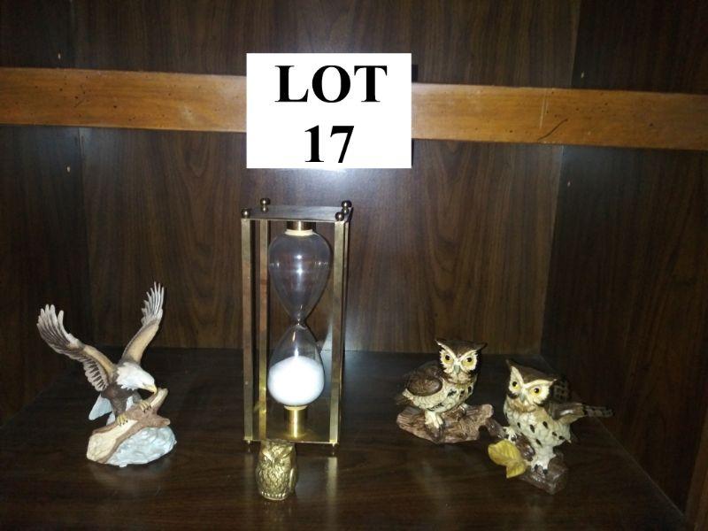 HOURGLASS, PORCELAIN EAGLE AND OWLS