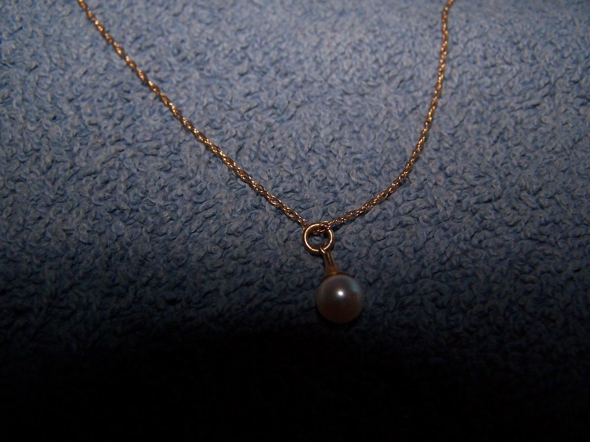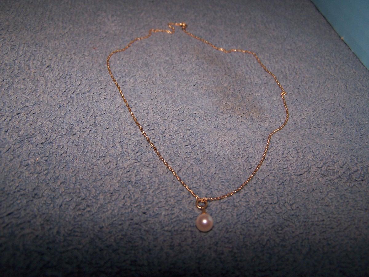 THIS IS A LOVELY VINTAGE 14K GOLD & PEARL NECKLACE. CHAIN-MARKED, 16'' LONG. 1.29 GR TW. SLIGHT WEAR.