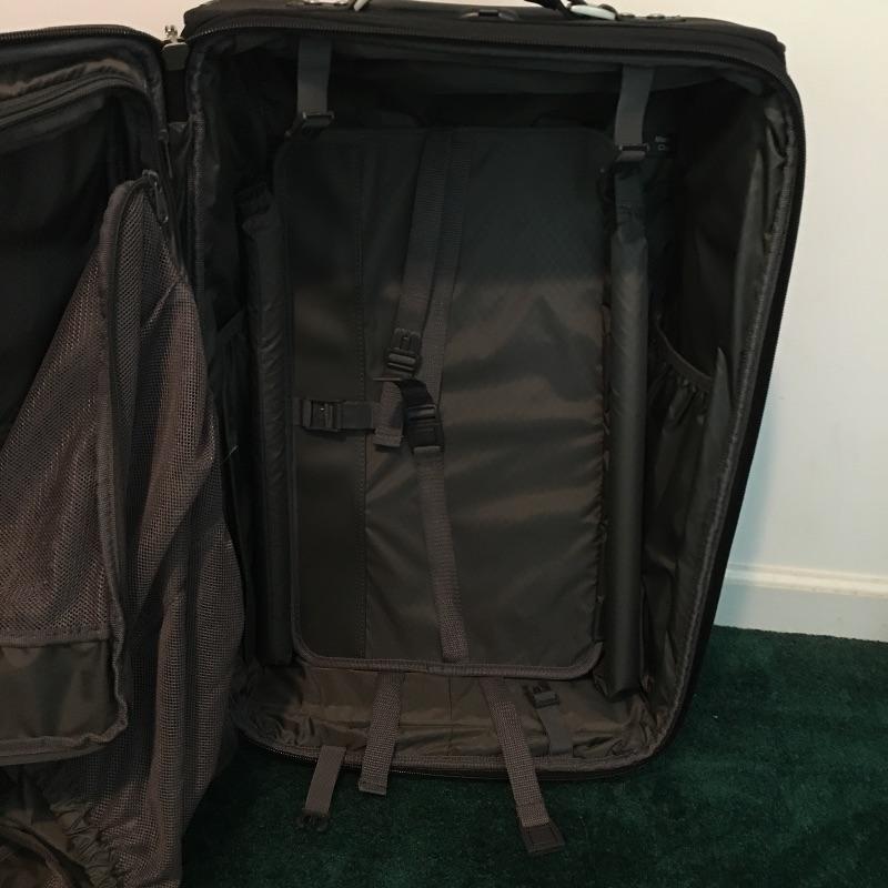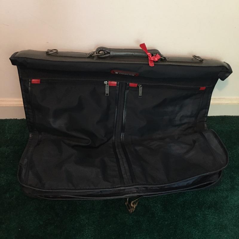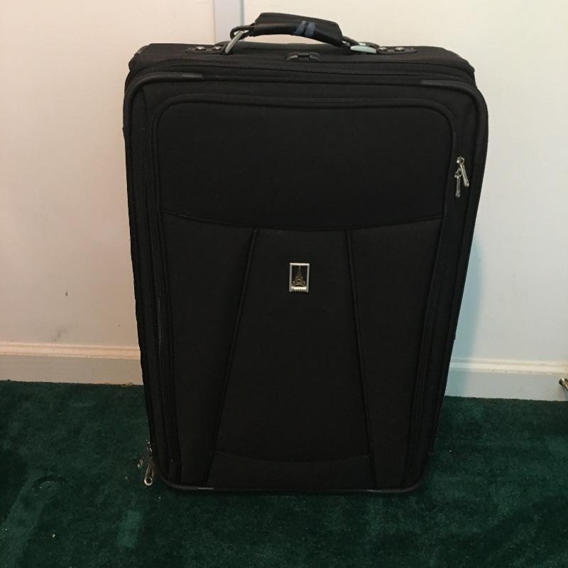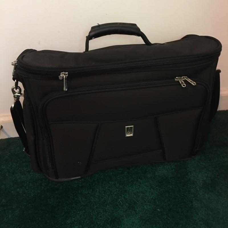 Luggage lot includes Travelpro roll along and shoulder bag, Samsonite wheeled hardsided suitcase, American Flyer garment bag, strap and travel wallet. Samsonite case measures 19” x 26” x 7”. Be ready for all your travel needs with this useful lot.