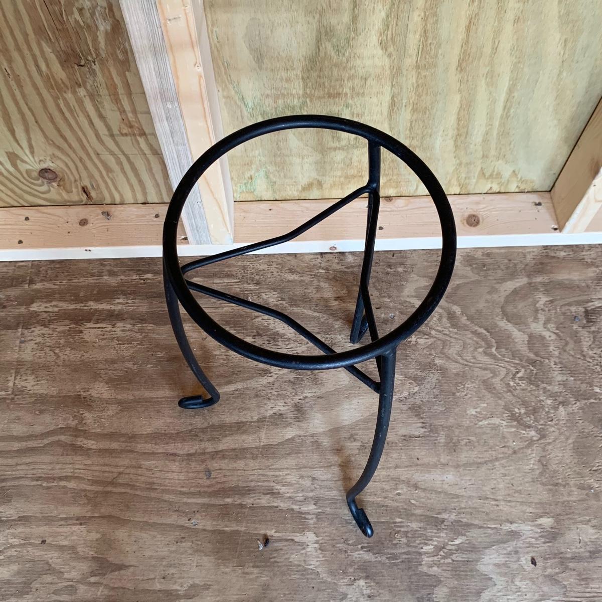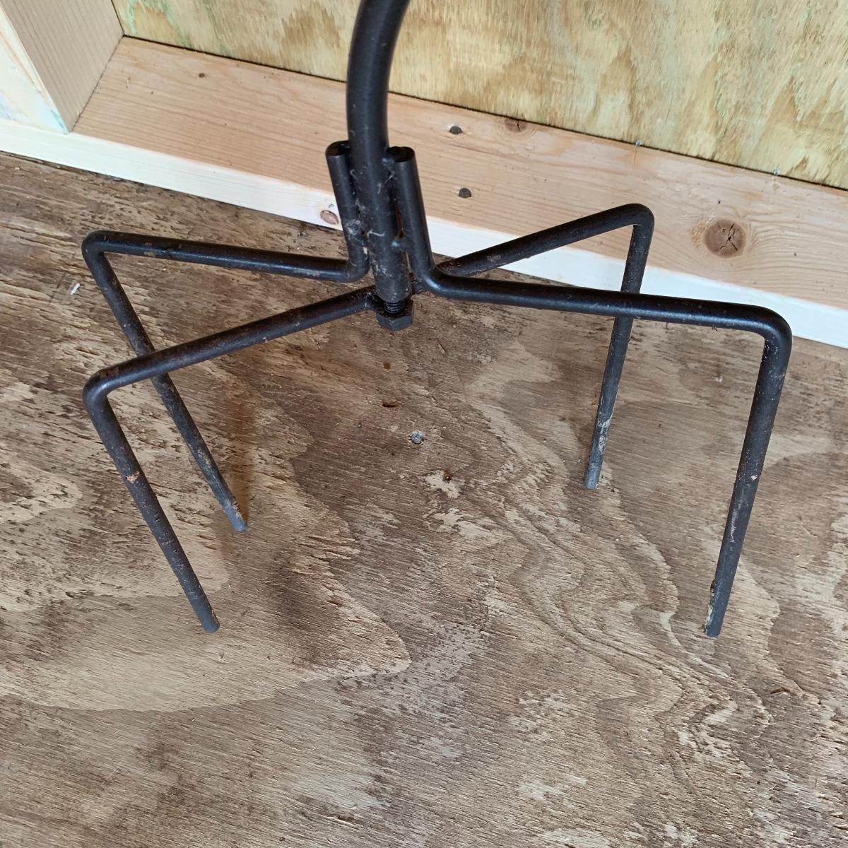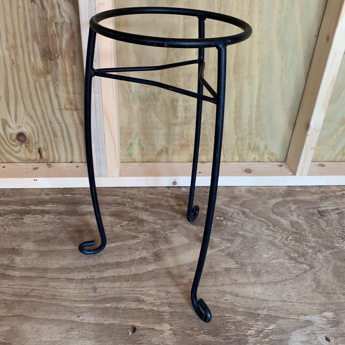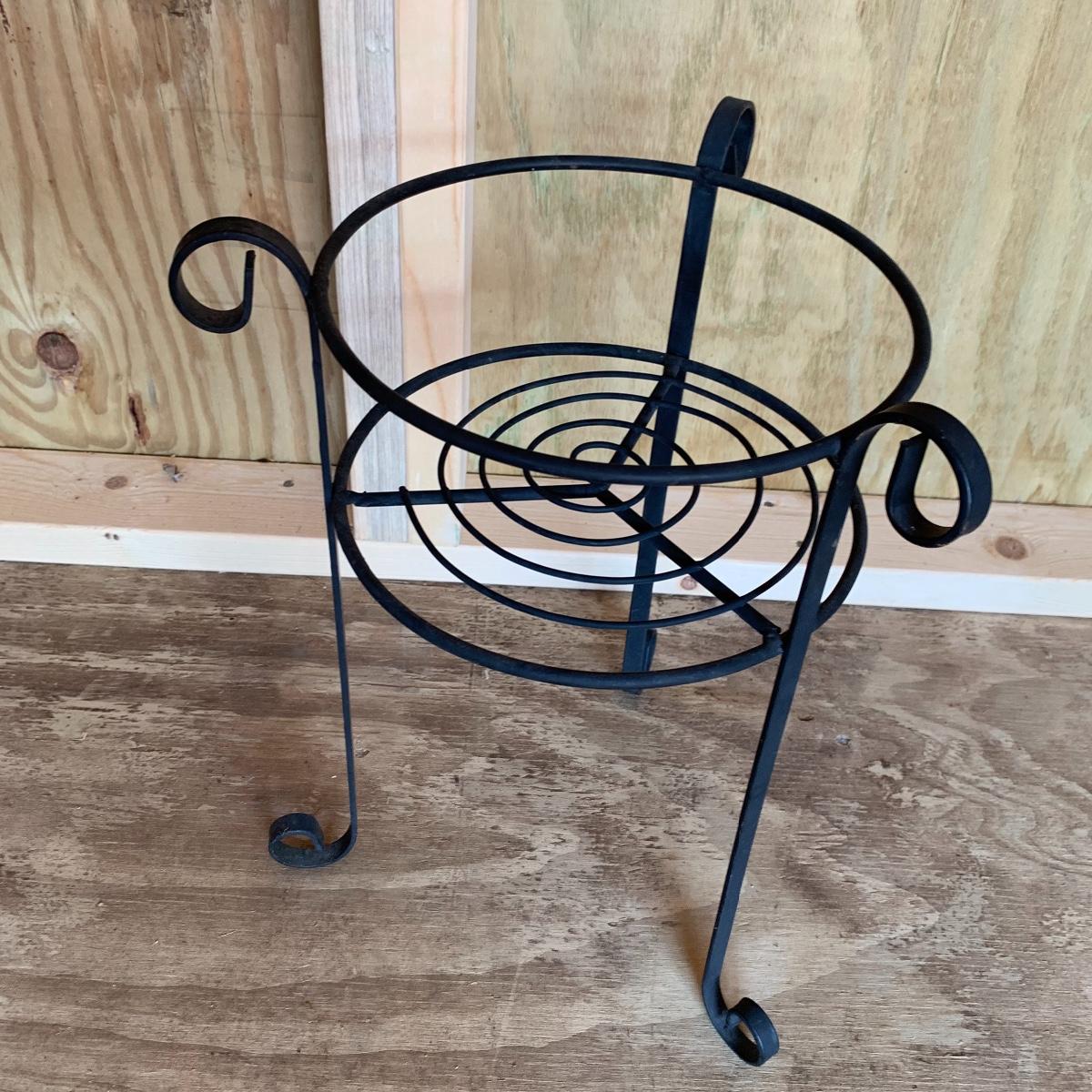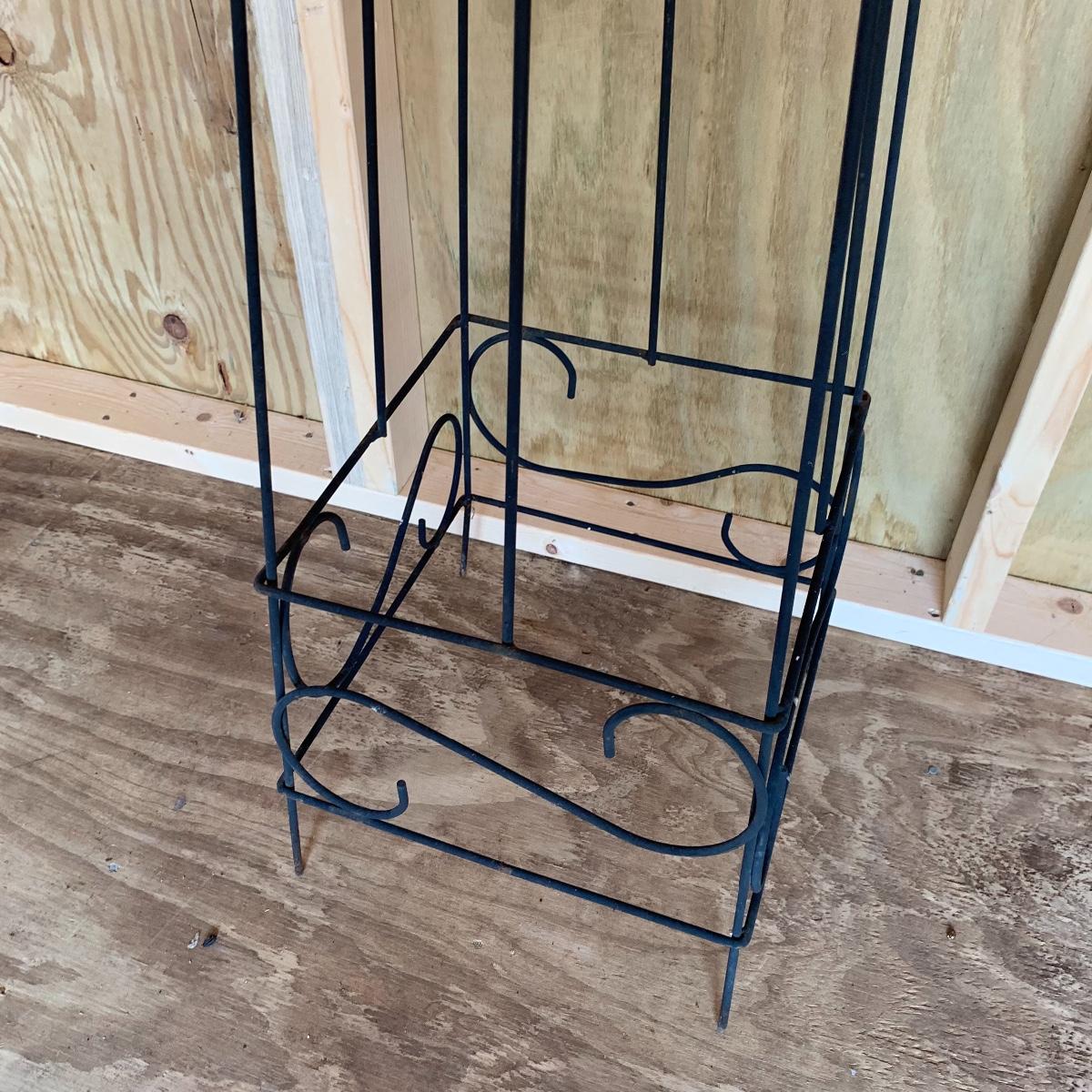 This lot contains a variety of metal plant stands and hangers, as well as a trellis. There are four table-like plant stands, five taller plant hanging poles, an obelisk shaped trellis, and some smaller decor. The plant stands range from 15”-20” tall. The trellis is about 13” x 13” x 62”. The tallest hanging pole has one hook on either side of it and is about 90” tall. These are all used and some are a bit rusted, but still lovely and functional. Local pickup only.