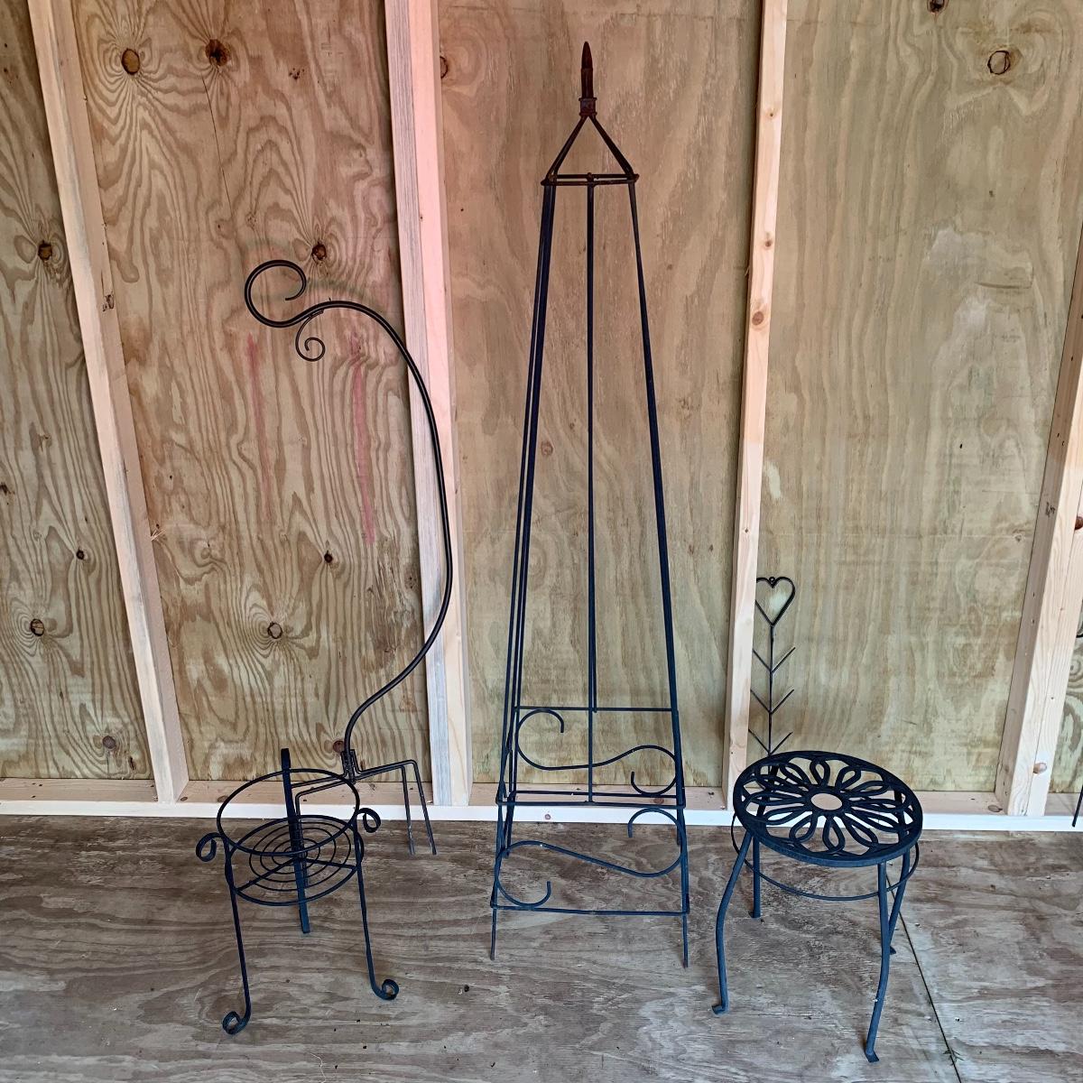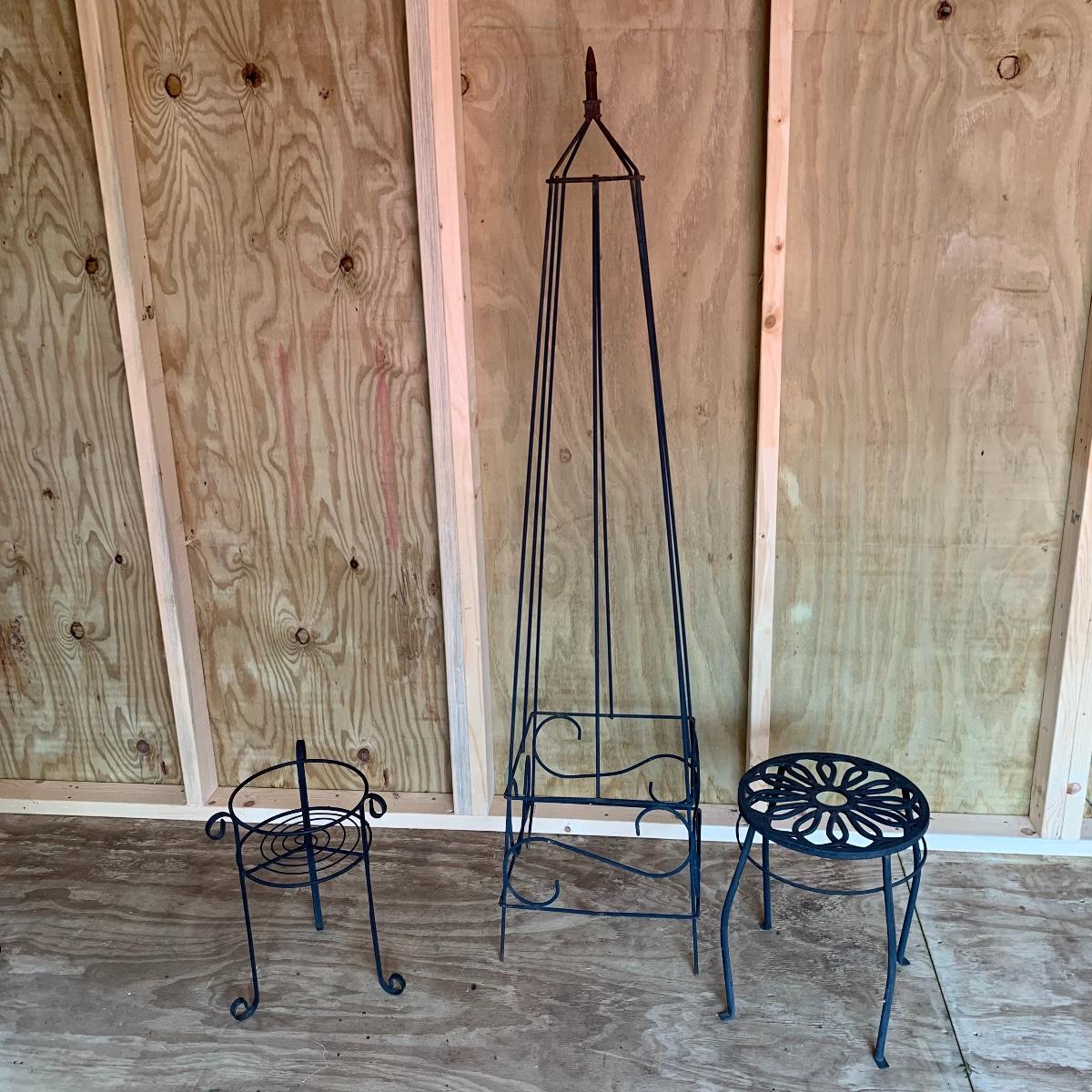 Lot 17 - Metal Plant Hanging Poles, Stands, & Obelisk Trellis