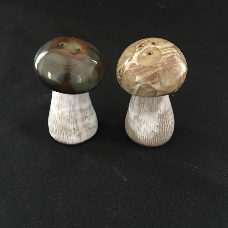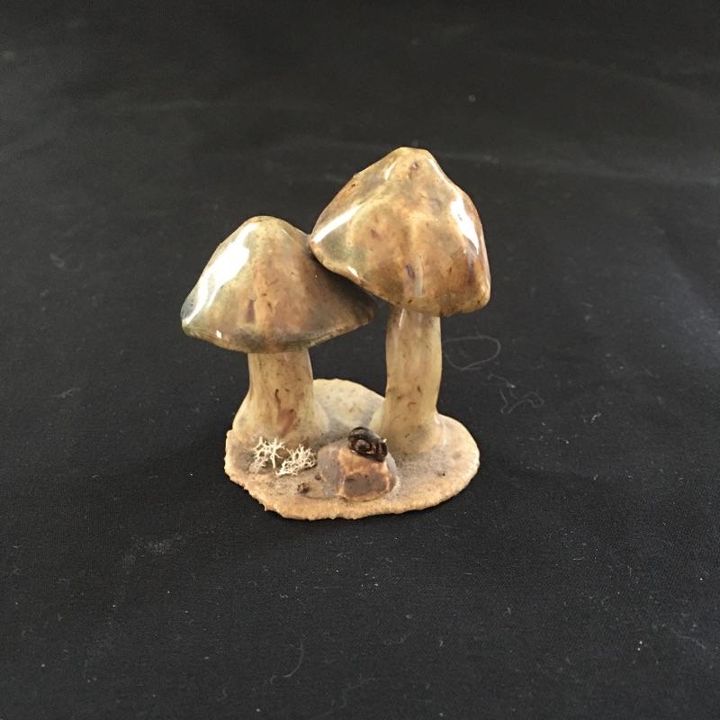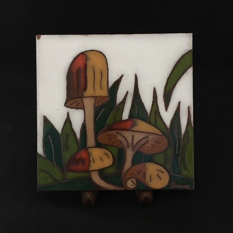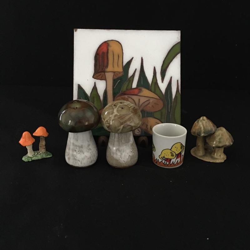 Get back to nature in the comfort of your own home! Lot includes salt and pepper shakers, two small mushroom figurines, mini cup and a signed tile with a mushroom motif. See photos for markings and signatures. Tile measures 6” x 6”.