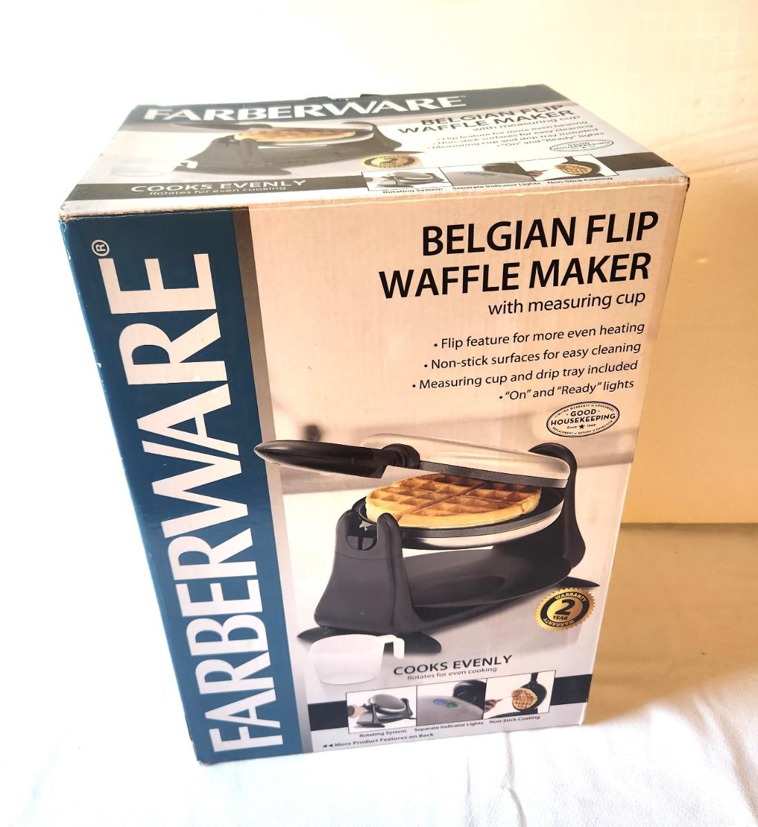 Brand new in Box - Farberware Belgian Waffle maker - complete. Flip Style, cooks evenly.