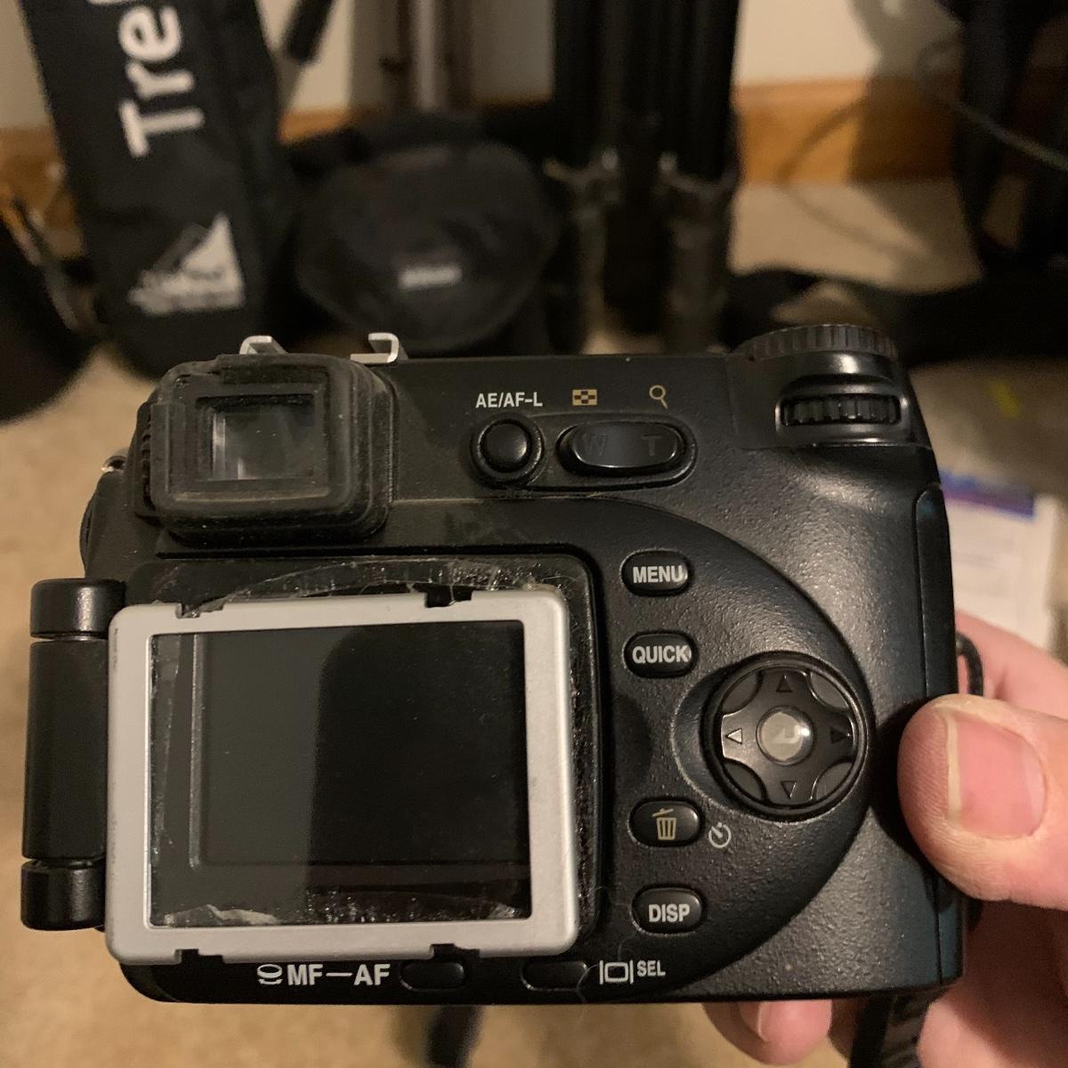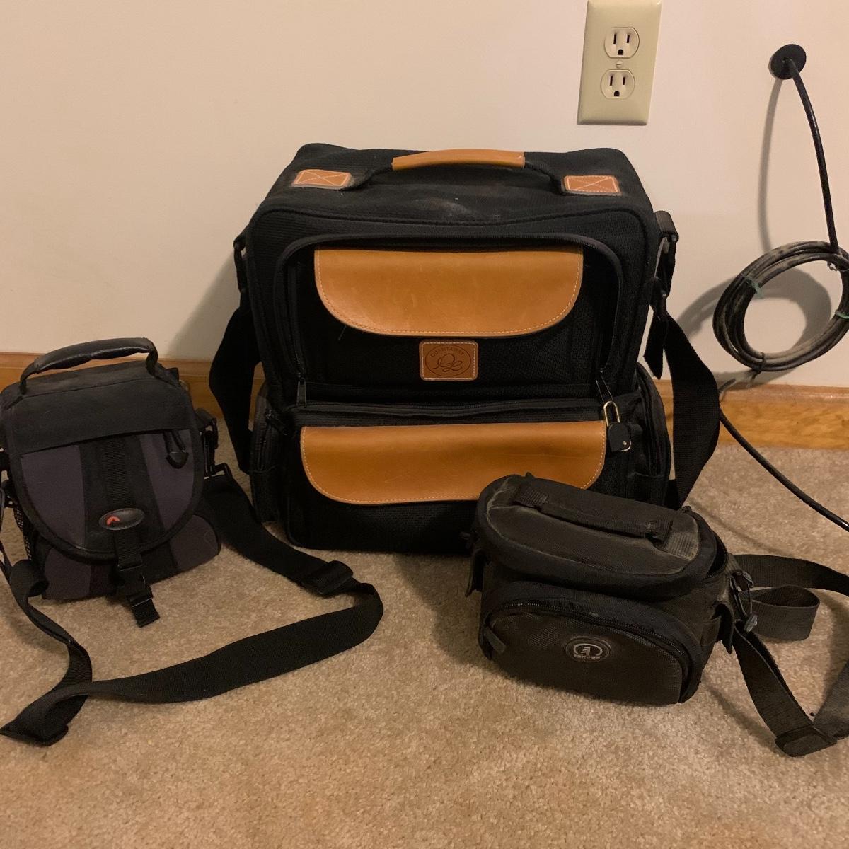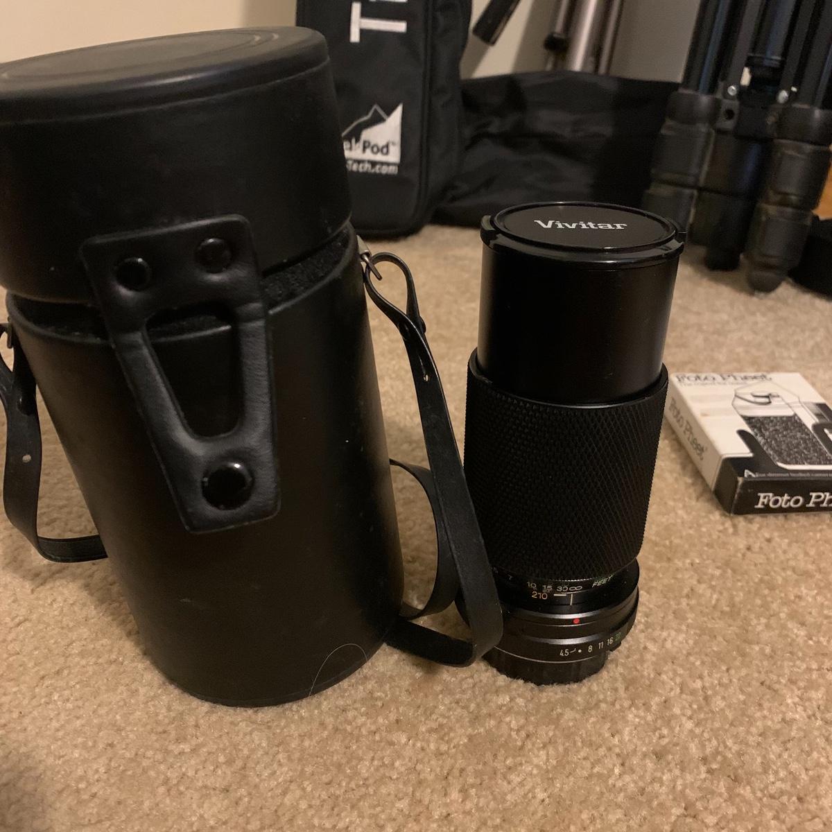 Lot contains film and digital camera, tripods, lens and accessories. Kodak Advantix 4100ix zoom camera, Yashica Zoomtec 60 (film still in camera as battery is dead), Nikon Coolpix 950 digital camera and Nikon Cool Pix 8400 are the cameras featured in this lot. All appear to be operable but this is not verified. All were in cases and well kept. There are rechargeable batteries, a Vivitar lens and three tripods. Both large and small tripods are by Quanaray and there is a Trek Pod tripod/walking stick in like new condition.along with the cases the camera’s are stored in there are three extras LowePro, Tamrac and a large Quantary case that measures 16” x15” x8”. Two digital photography books also included in this lot. Shipping available.