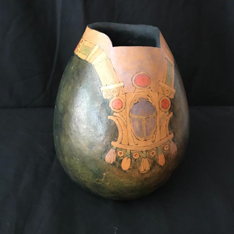 Nicely painted gourd made by a local artist. Signed on the bottom. (see photos) 7”d x 8.5”h Shipping available.