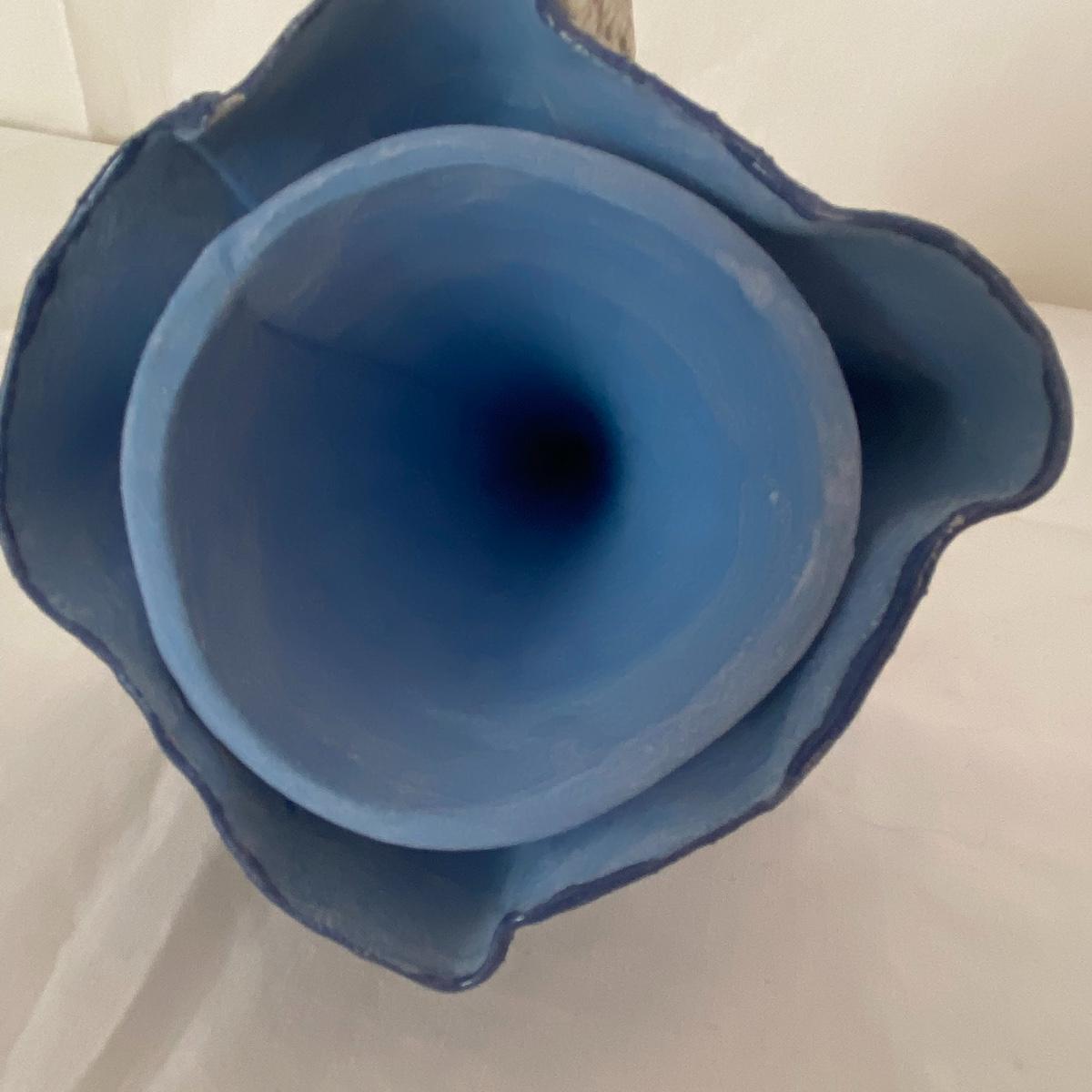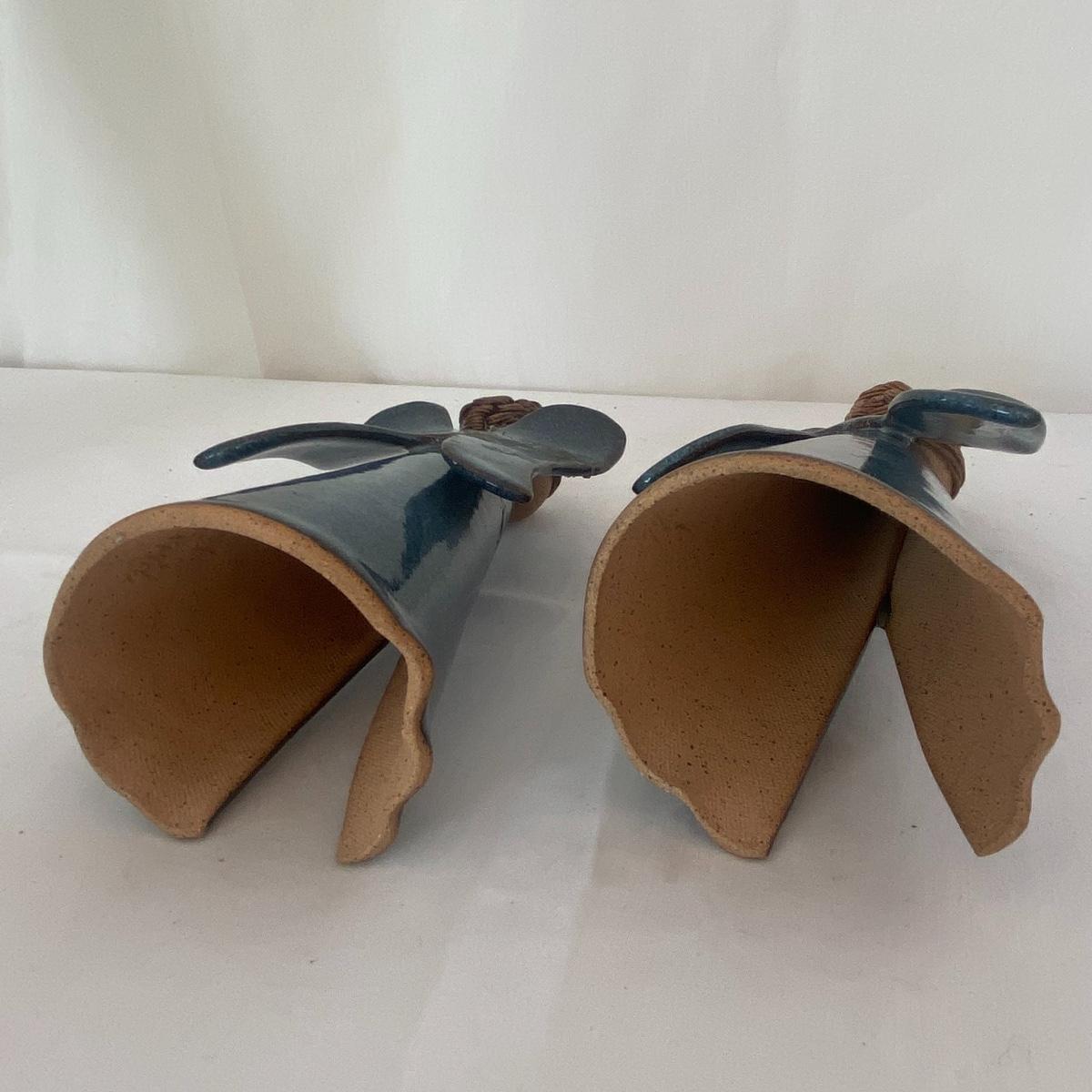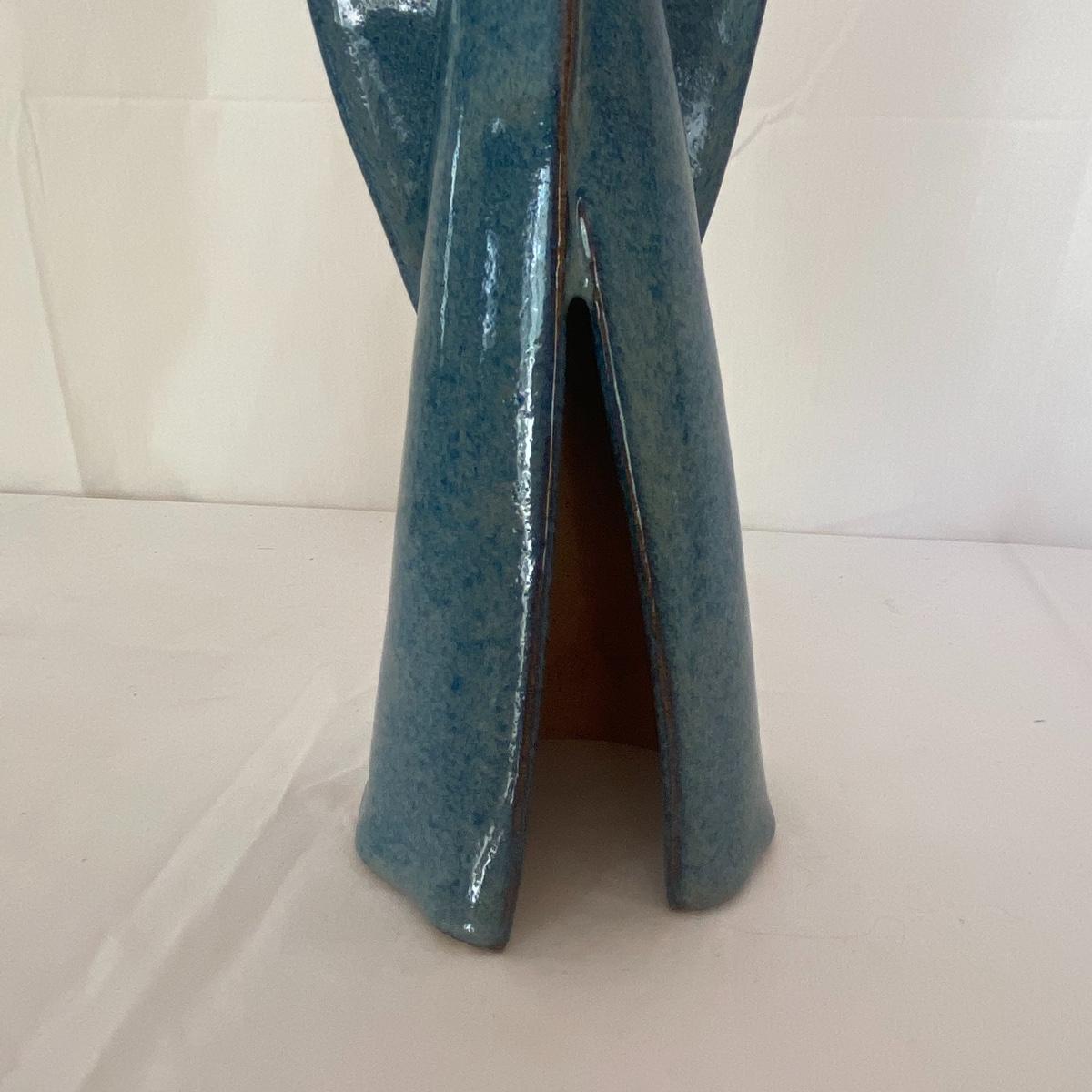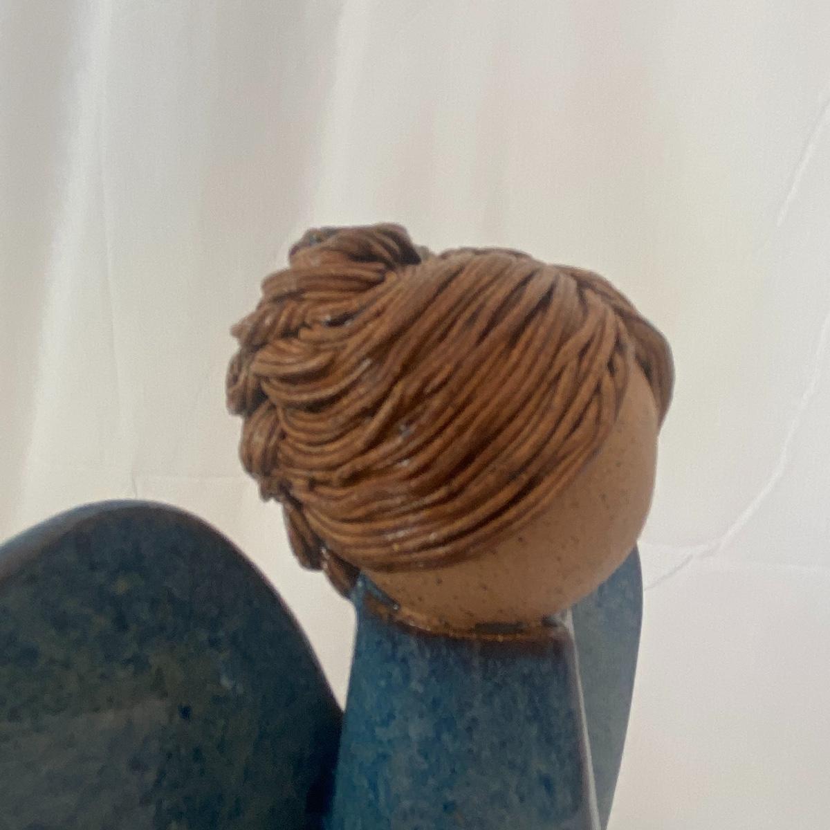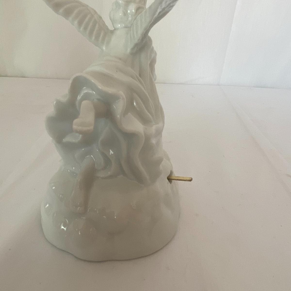 Angelic lot includes many decorative angel collectibles. Set of three sister angels, beautifully glazed and signed pottery, one angle appears to have a wing repair from previous break, see photos. Largest angel stands 11.5” tall. Set of three hand blown glass angels from Twos Company. Smallest angel stands approximately 4” tall. See photos. A glass angel music maker standing 5.5” tall included as well, with a delightful tune! Two additional angel figurines are included, one white and blue and the other is purple and also a candle holder! Lastly, included in this lot are a pair of Russ Bernie Co. angel ornaments. See photos for stunning colors and details. Shipping available!