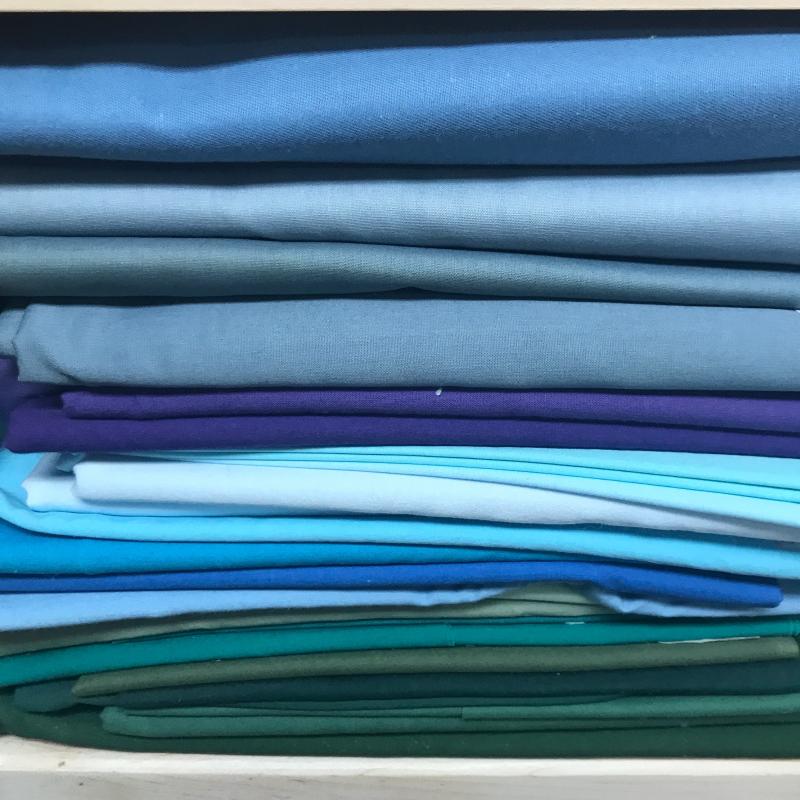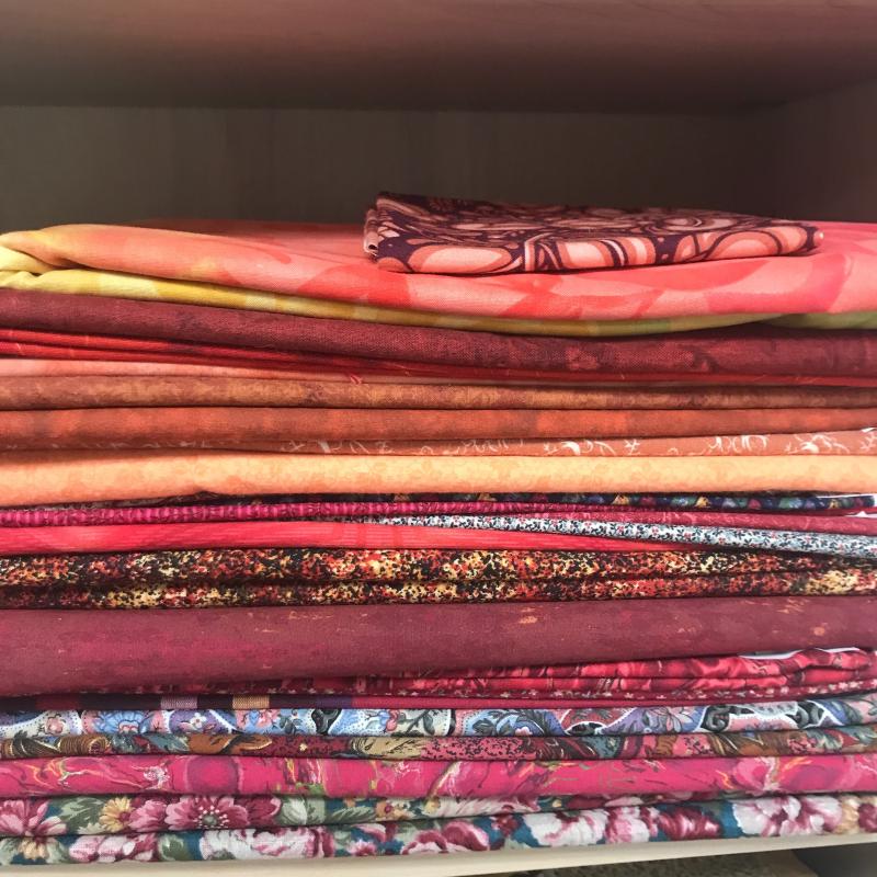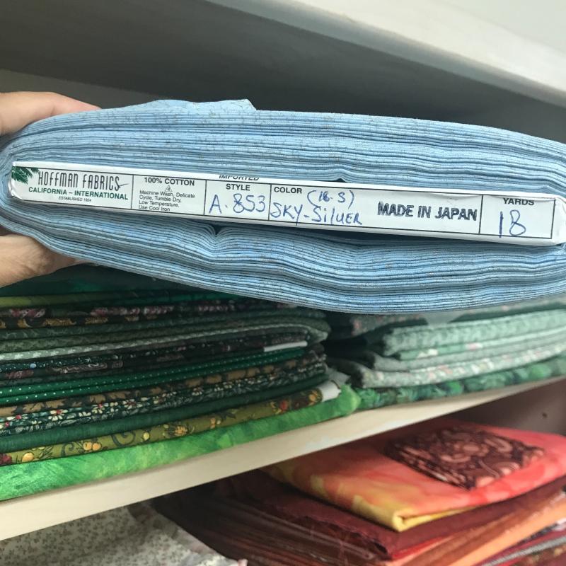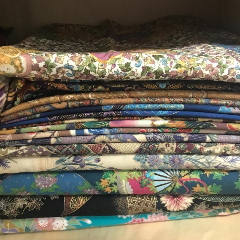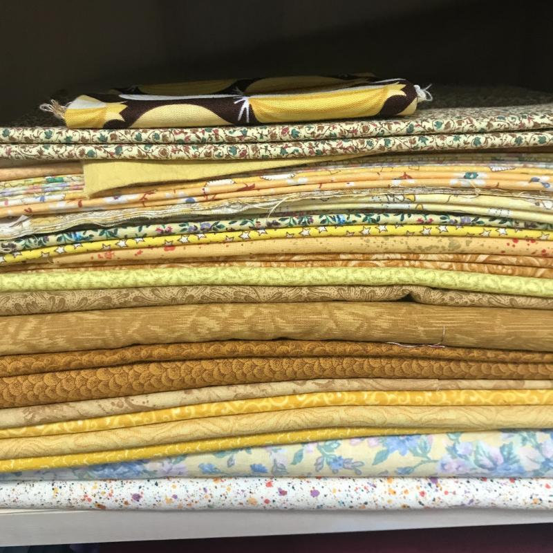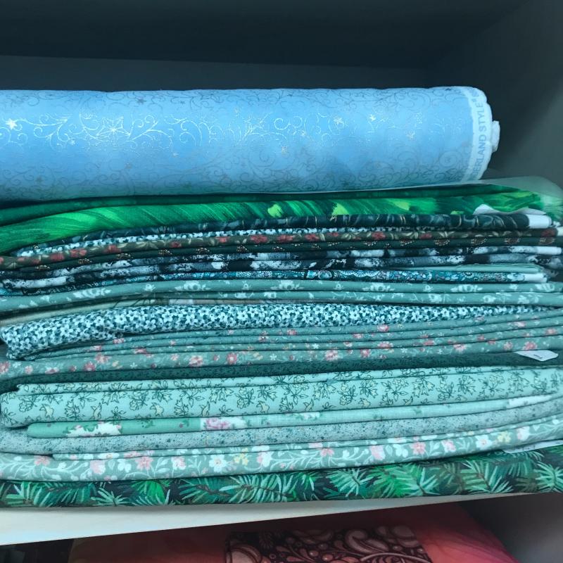 Six shelves of fabric for your quilting projects. Most fabric is at least one yard. This lot also Includes one bolt of light blue and silver fabric. See photos for designs and colors. Shelf unit not included. Shipping available. We encourage you to come to the preview to see the fabric details in person.