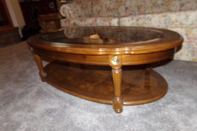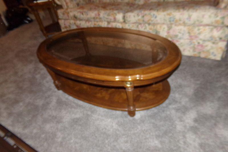 48"X28" 2 TIER OVAL COFFEE TABLE WITH GLASS TOP IN VG CONDITION