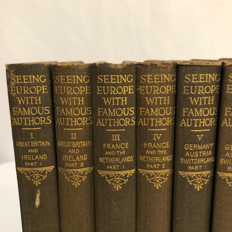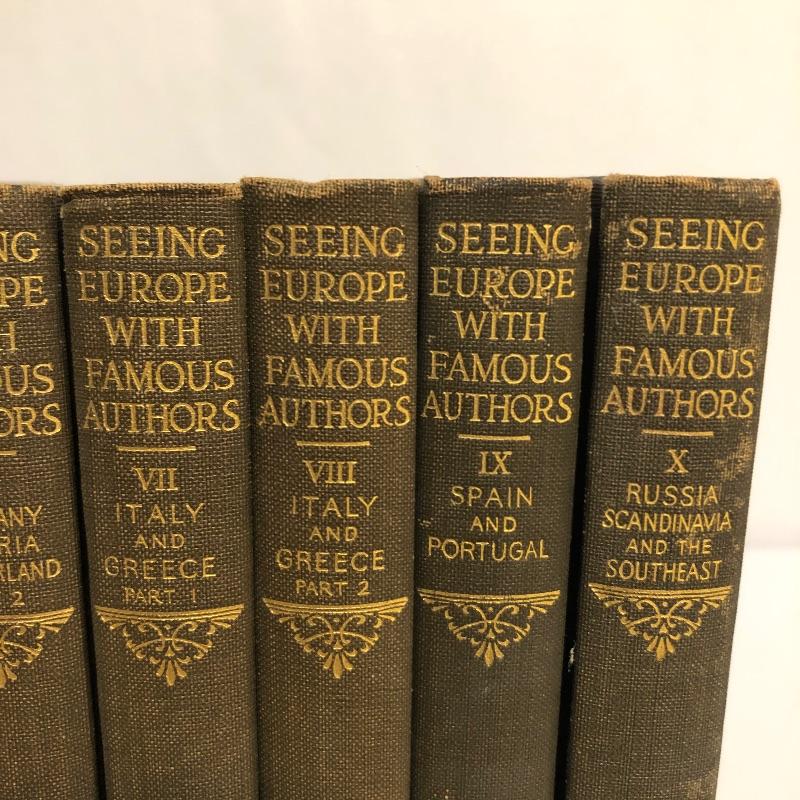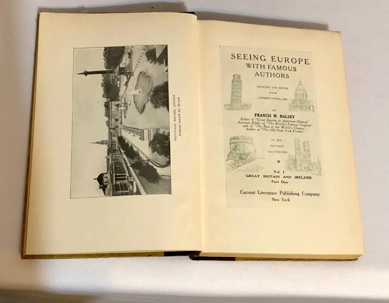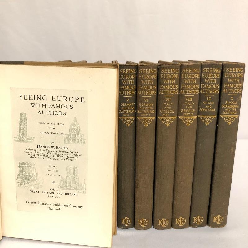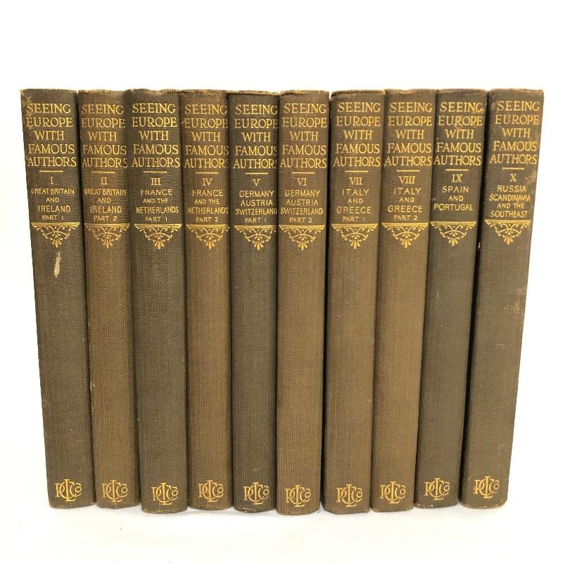 This ten volume set of books titled Seeing Europe with Famous Authors by Francis W. Halsey are dated 1914. See images for the countries. All ten books have top edge gilt and seem to be in very good condition with just some overall general page darkening due to their age.