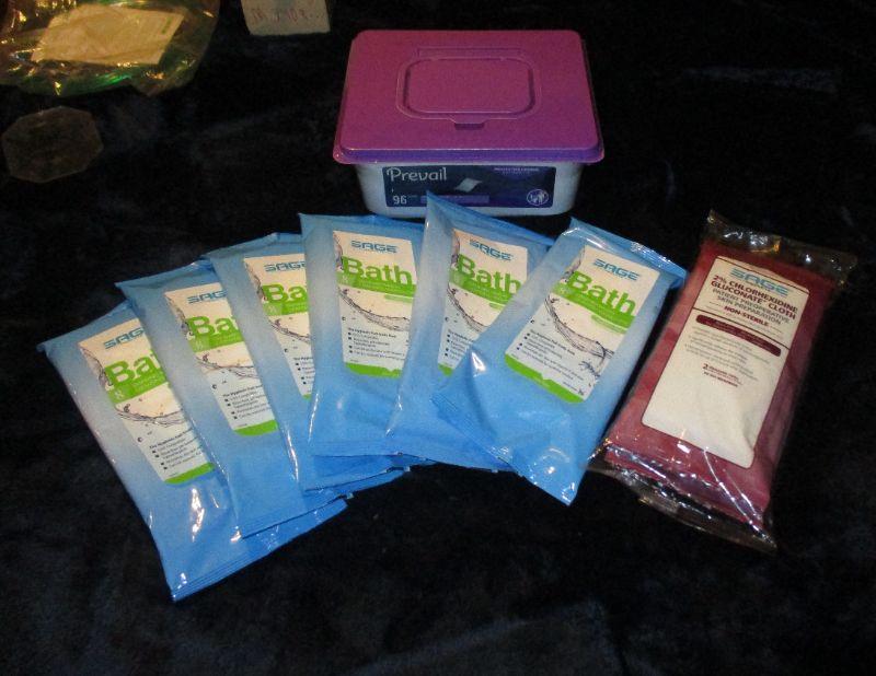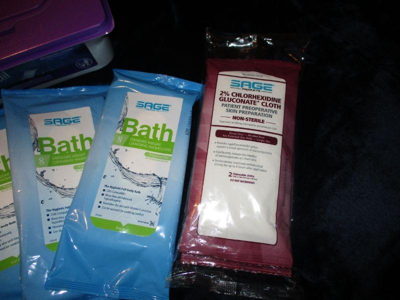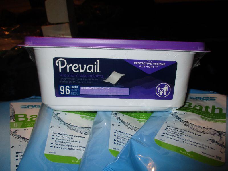 These would be great for camping trips or long road trips when you need a quick clean, but can't get to a shower/bath. There are 6 packages of the blue packages that contain 8 in each, 3 packages of the brown that have 2 in each, and then a tub of 96. All appear to have never been opened.