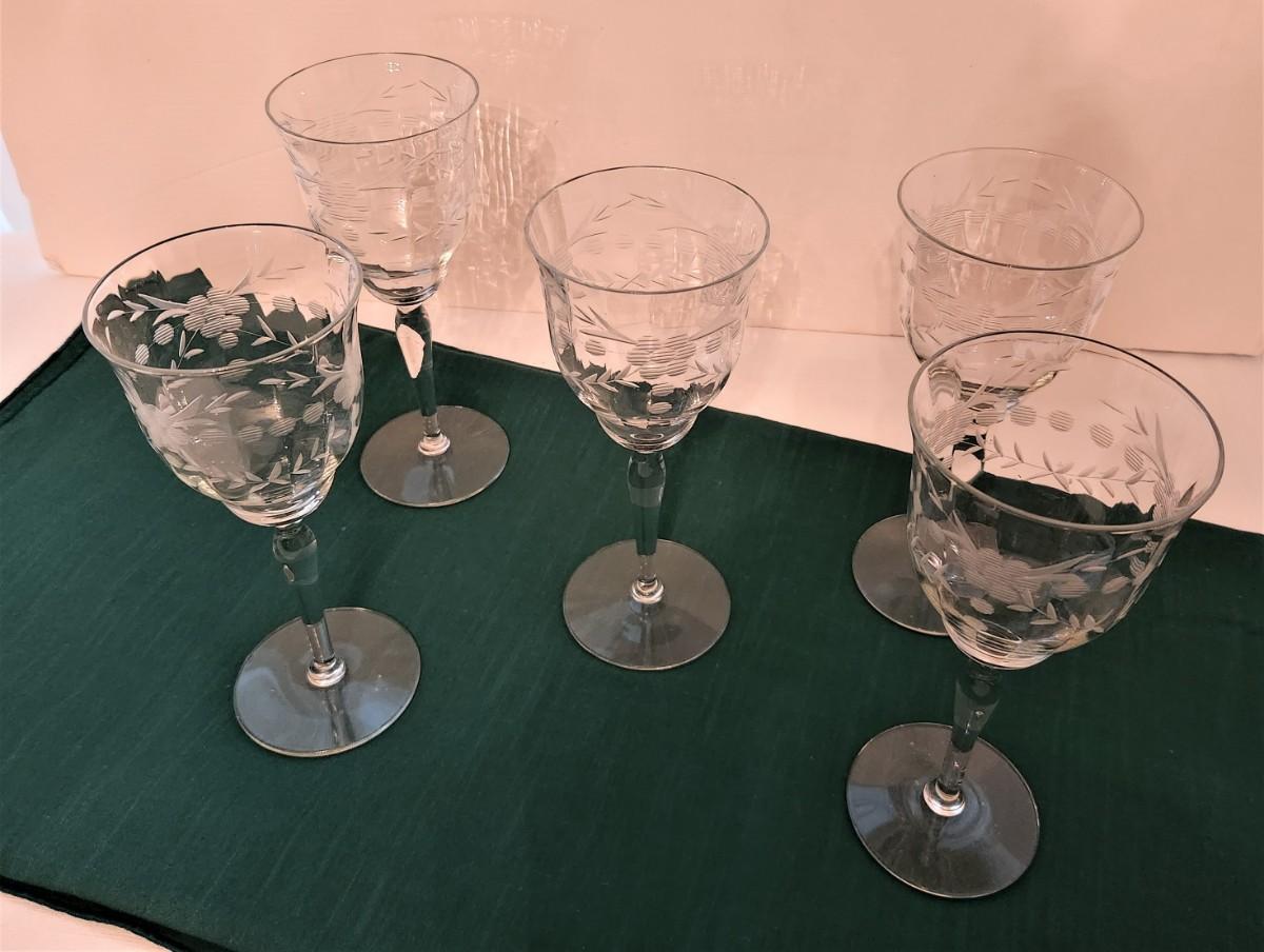 Lot #17 Set of 6 Vintage Crystal Goblets - floral motif