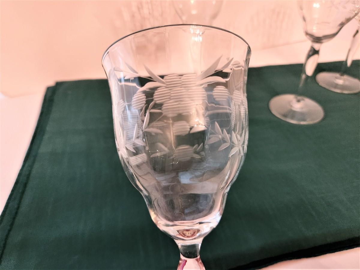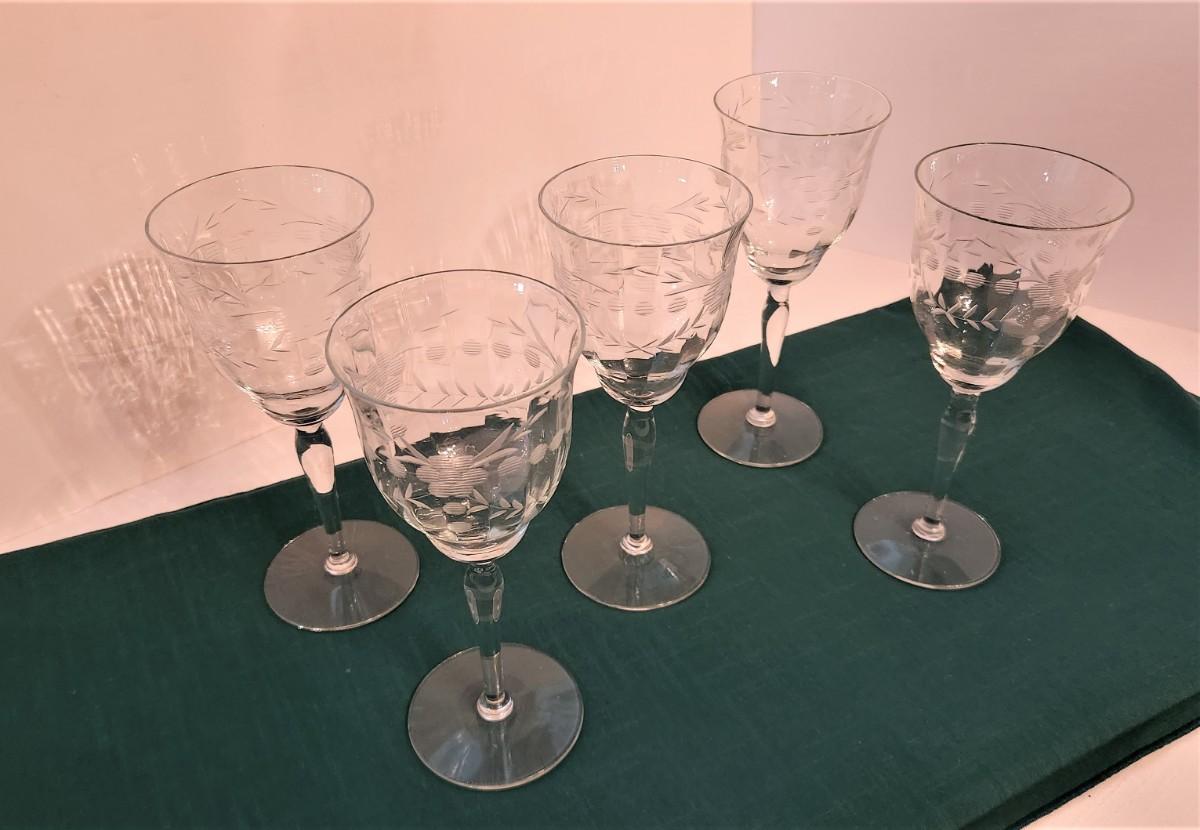 Lot #17  Set of 6 Vintage Crystal Goblets - floral motif