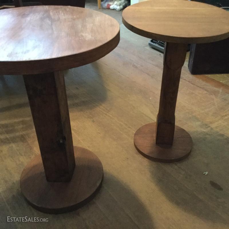 Lot 17:  Set of Two, MCM Round Wooden Side Tables